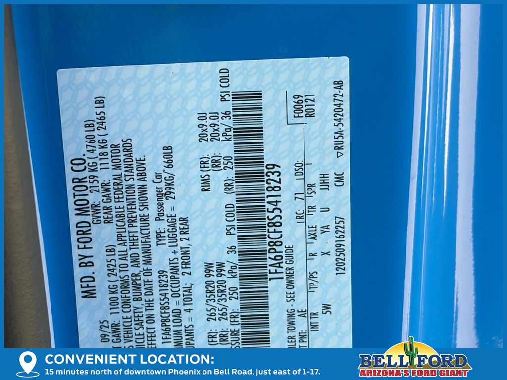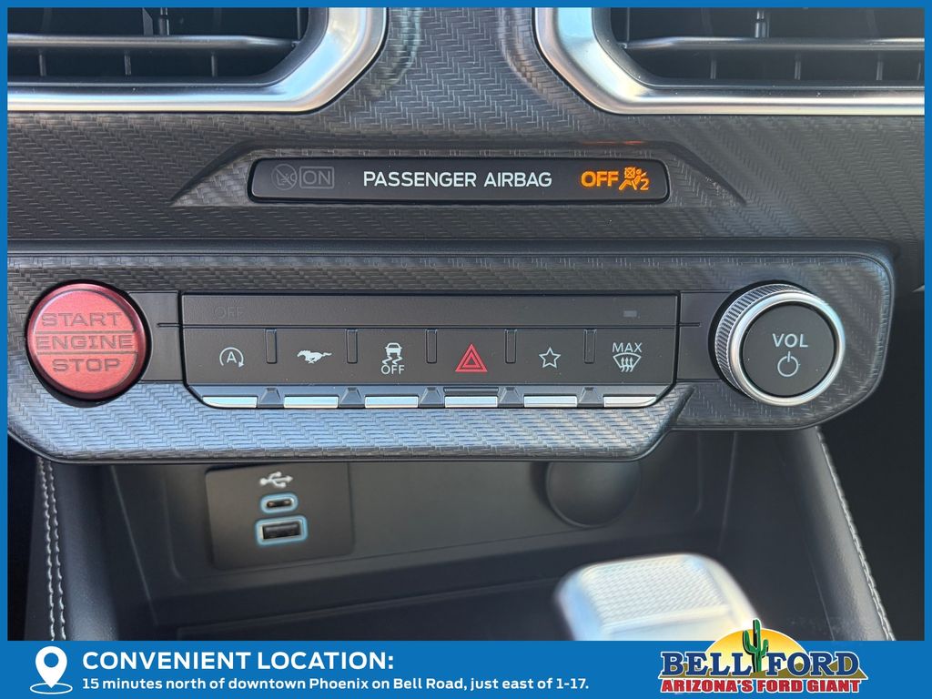 This Ford Mustang is equipped with the following options: 4-Wheel Disc Brakes, 6 Speakers, ABS brakes, Active Valve Performance Exhaust, Air Conditioning, Alloy wheels, AM/FM radio, AM/FM Stereo, Auto High-beam Headlights, Automatic temperature control, Brake assist, Bumpers: body-color, Cloth Bucket Seats, Compass, Delay-off headlights, Driver door bin, Driver vanity mirror, Dual front impact airbags, Dual front side impact airbags, Electronic Stability Control, Emergency communication system: 911 Assist, Exterior Parking Camera Rear, Four wheel independent suspension, Front anti-roll bar, Front Bucket Seats, Front Center Armrest, Front dual zone A/C, Front reading lights, Fully automatic headlights, Illuminated entry, Knee airbag, Leather Shift Knob, Leather steering wheel, Low tire pressure warning, Occupant sensing airbag, Outside temperature display, Overhead airbag, Overhead console, Panic alarm, Passenger door bin, Passenger vanity mirror, Power door mirrors, Power steering, Power windows, Radio data system, Rain sensing wipers, Rear anti-roll bar, Rear Parking Sensors, Rear window defroster, Remote keyless entry, Remote Start System, Speed control, Speed-sensing steering, Speed-Sensitive Wipers, Split folding rear seat, Spoiler, Sport steering wheel, Steering wheel mounted audio controls, SYNC 4, Tachometer, Telescoping steering wheel, Tilt steering wheel, Traction control, Trip computer, Variably intermittent wipers, Voltmeter, and Wheels: 18" x 8.5" Ebony Black Painted Aluminum. Price includes: $3500 - Retail Customer Cash. Exp. 01/05/2026