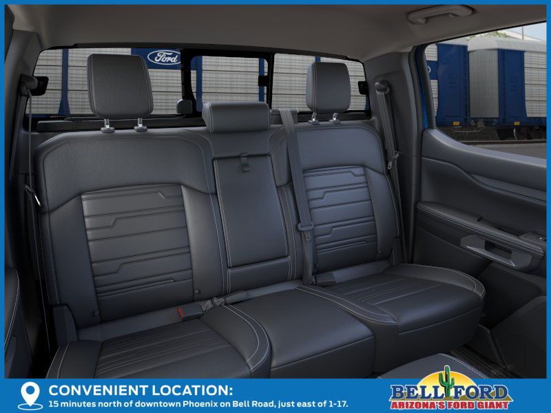 This Ford Ranger is equipped with the following options: Advanced Towing Package (Pro Trailer Backup Assist, Rear Parking Sensors w/Trailer Guidance, and Trailer Brake Controller), Equipment Group 500A Standard, FX4 Off-Road Package (FX4 Off-Road Box Decal, FX4 Selectable Drive Modes, Off-Road Screen in Center Stack, Off-Road Tuned Shocks, and Trail Control), Sport Appearance Package (Gray Painted Center Bar & Grille Surround, Gray Painted Front Fascia & Rear Bumper, and Sport Box Decal), Trailer Tow Package (Class IV Trailer Hitch Receiver), 4WD, 10 Speakers, 4-Wheel Disc Brakes, ABS brakes, Air Conditioning, Alloy wheels, AM/FM radio: SiriusXM, Auto High-beam Headlights, Auto-dimming Rear-View mirror, Automatic temperature control, Brake assist, Compass, Delay-off headlights, Driver door bin, Driver vanity mirror, Dual front impact airbags, Dual front side impact airbags, Electronic Stability Control, Emergency communication system: SYNC 4 911 Assist, Front anti-roll bar, Front Bucket Seats, Front Center Armrest, Front dual zone A/C, Front fog lights, Front reading lights, Front wheel independent suspension, Fully automatic headlights, Garage door transmitter, Heated door mirrors, Heated front seats, Heated steering wheel, Illuminated entry, Leather Shift Knob, Leather steering wheel, Leather-Trimmed Front Heated Bucket Seats, Low tire pressure warning, Memory seat, Navigation system: Connected Navigation, Occupant sensing airbag, Outside temperature display, Overhead airbag, Overhead console, Panic alarm, Passenger door bin, Passenger vanity mirror, Power door mirrors, Power driver seat, Power passenger seat, Power steering, Power windows, Radio: B&O Sound System by Bang & Olufsen, Rain sensing wipers, Rear reading lights, Rear seat center armrest, Rear step bumper, Rear window defroster, Remote keyless entry, Security system, SiriusXM Satellite Radio, Speed control, Speed-sensing steering, Steering wheel mounted audio controls, SYNC 4A w/Connected Navigation, Telescoping steering wheel, Tilt steering wheel, Traction control, Trip computer, Turn signal indicator mirrors, Variably intermittent wipers, Voltmeter, and Wheels: 18" Machined Aluminum w/Dark Pockets. Price includes: $2000 - Bonus Customer Cash. Exp. 01/05/2026
