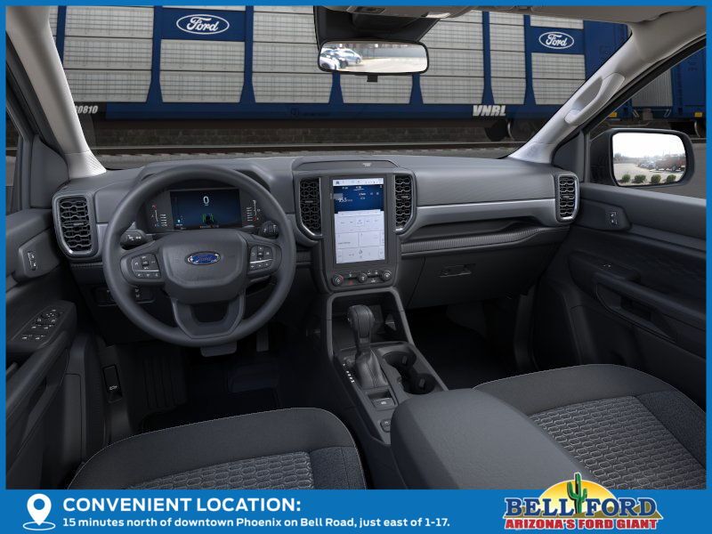 This Ford Ranger is equipped with the following options: Equipment Group 100A Standard, STX Appearance Package (Halogen Fog Lamps, LED Reflector Headlamps, and STX Fender Badge), Trailer Tow Package (Class IV Trailer Hitch Receiver), 4WD, 3.73 Axle Ratio, 4-Wheel Disc Brakes, 6 Speakers, ABS brakes, Air Conditioning, Alloy wheels, AM/FM radio, AM/FM Stereo, Auto High-beam Headlights, Brake assist, Bumpers: body-color, Carpet Floor Covering w/Carpet Floor Mats, Cloth Front Bucket Seats, Compass, Delay-off headlights, Driver door bin, Dual front impact airbags, Dual front side impact airbags, Electronic Stability Control, Emergency communication system: SYNC 4 911 Assist, Front anti-roll bar, Front Bucket Seats, Front Center Armrest, Front fog lights, Front reading lights, Front wheel independent suspension, Fully automatic headlights, Illuminated entry, Low tire pressure warning, Occupant sensing airbag, Outside temperature display, Overhead airbag, Overhead console, Panic alarm, Passenger door bin, Power door mirrors, Power steering, Power windows, Rear reading lights, Rear seat center armrest, Rear step bumper, Remote keyless entry, Security system, Speed control, Speed-sensing steering, Steering wheel mounted audio controls, SYNC 4A, Telescoping steering wheel, Tilt steering wheel, Traction control, Trip computer, Variably intermittent wipers, Voltmeter, and Wheels: 17" Silver-Painted Aluminum. Price includes: $2000 - Bonus Customer Cash. Exp. 01/05/2026