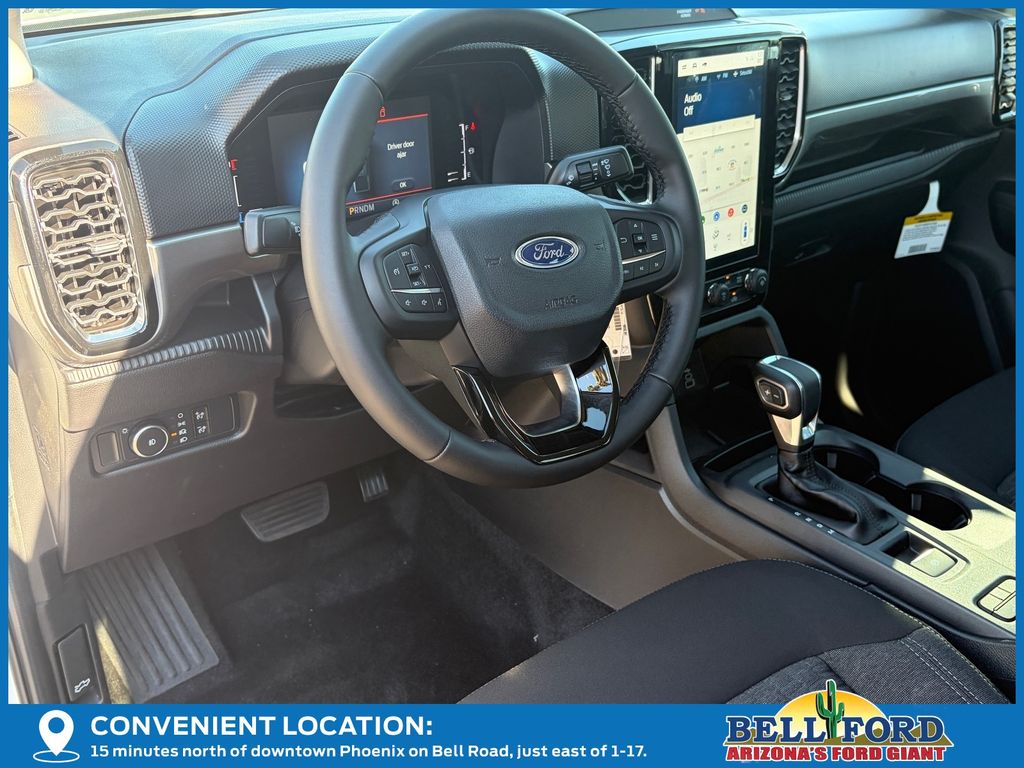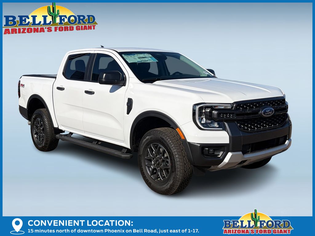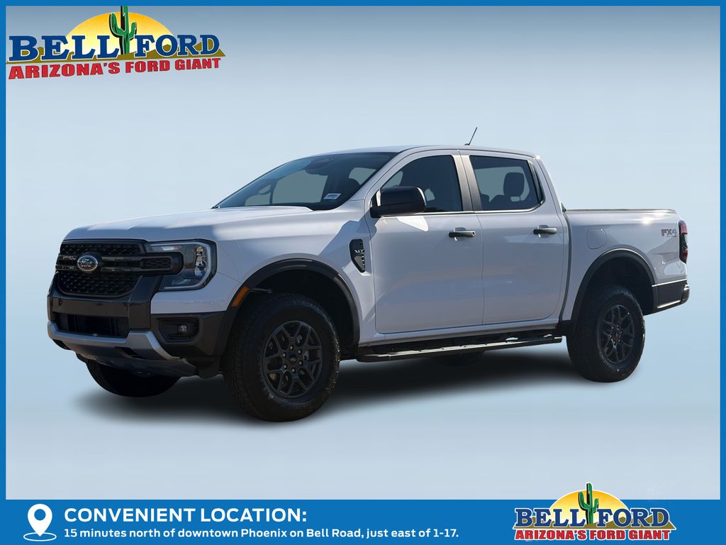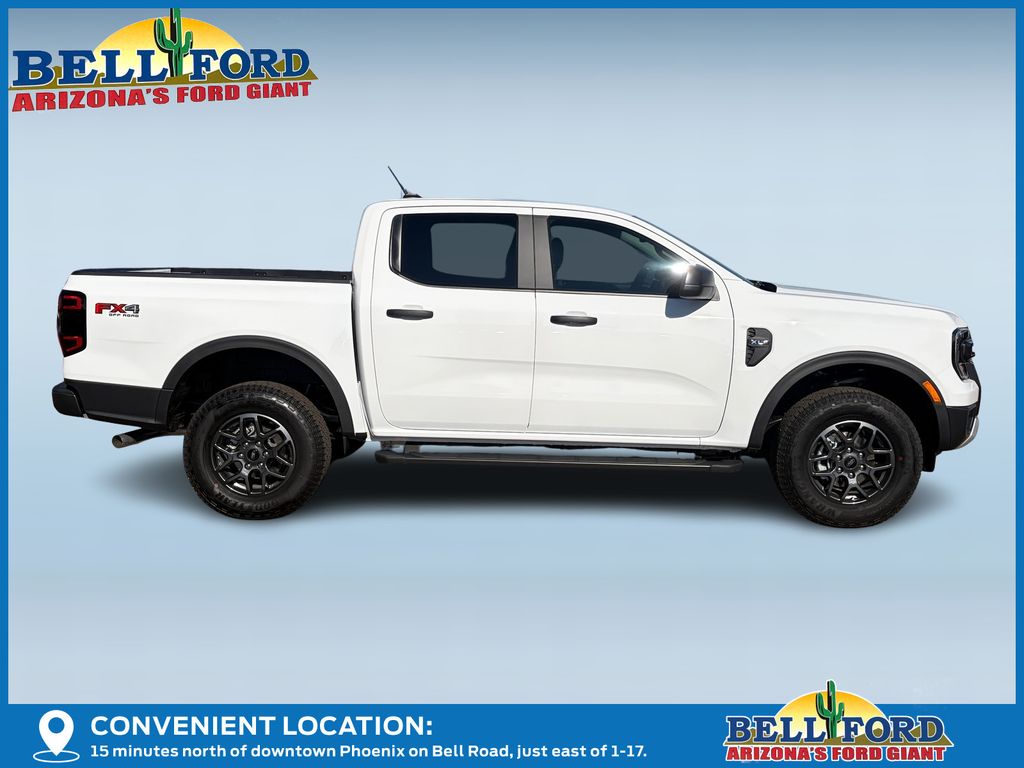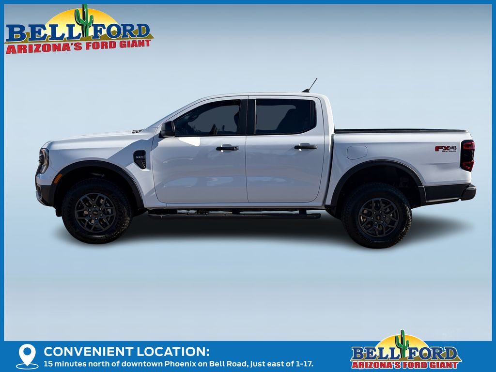 This Ford Ranger is equipped with the following options: Equipment Group 300A Standard, FX4 Off-Road Package (FX4 Off-Road Box Decal, FX4 Selectable Drive Modes, Off-Road Screen in Center Stack, Off-Road Tuned Shocks, and Trail Control), Sport Appearance Package (Gray Painted Center Bar & Grille Surround, Gray Painted Front Fascia & Rear Bumper, and Sport Box Decal), Trailer Tow Package (Class IV Trailer Hitch Receiver), 4WD, 4-Wheel Disc Brakes, 6 Speakers, ABS brakes, Air Conditioning, Alloy wheels, AM/FM radio: SiriusXM, AM/FM Stereo, Auto High-beam Headlights, Auto-dimming Rear-View mirror, Black Running Boards, Brake assist, Cloth Front Bucket Seats, Compass, Delay-off headlights, Driver door bin, Driver vanity mirror, Dual front impact airbags, Dual front side impact airbags, Electronic Stability Control, Emergency communication system: SYNC 4 911 Assist, Front anti-roll bar, Front Bucket Seats, Front Center Armrest, Front fog lights, Front reading lights, Front wheel independent suspension, Fully automatic headlights, Illuminated entry, Leather Shift Knob, Low tire pressure warning, Navigation system: Connected Navigation, Occupant sensing airbag, Outside temperature display, Overhead airbag, Overhead console, Panic alarm, Passenger door bin, Passenger vanity mirror, Power door mirrors, Power steering, Power windows, Rear reading lights, Rear seat center armrest, Rear step bumper, Rear window defroster, Remote keyless entry, Security system, SiriusXM Satellite Radio, Speed control, Speed-sensing steering, Steering wheel mounted audio controls, SYNC 4A w/Connected Navigation, Telescoping steering wheel, Tilt steering wheel, Traction control, Trip computer, Variably intermittent wipers, Voltmeter, and Wheels: 17" Gray-Painted Aluminum. Price includes: $2000 - Bonus Customer Cash. Exp. 01/05/2026