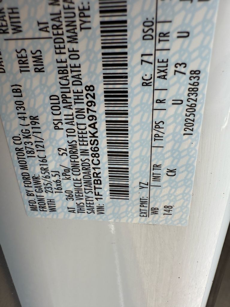 - VIN : 1FTBR1C82SKA92967