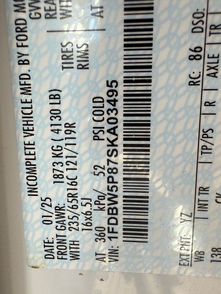 This Ford Transit-350 is equipped with the following options: Exterior Upgrade Package (Black HID Lamps, Front Fog Lamps, Honeycomb Mesh Grille w/Chrome Surround, Wheels: 16" Steel w/Full Silver Wheel Covers, and Wiper Activated Headlamps), Interior Upgrade Package (Dark Palazzo Gray Cloth Bucket Seats and Illuminated Vinyl-Trimmed Sun Visors), Order Code 501A, 110V/400W Power Outlet, 4 Speakers, 4-Wheel Disc Brakes, 4.10 Limited Slip Axle Ratio, ABS brakes, Air Conditioning, AM/FM radio, AM/FM Stereo, Auto High-beam Headlights, Brake assist, Dark Palazzo Gray Vinyl Bucket Seats, Delay-off headlights, Driver door bin, Driver's Seat Mounted Armrest, Dual AGM Batteries (70 Amp-hr Each), Dual front impact airbags, Dual front side impact airbags, Electronic Air Temperature Control, Electronic Stability Control, Front anti-roll bar, Front Bucket Seats, Front Overhead Shelf, Front reading lights, Front wheel independent suspension, Fully automatic headlights, Illuminated entry, Large Center Console, Long-Arm Manual-Folding Heated Power Adjust Mirrors, Low tire pressure warning, Modified Vehicle Wiring System, Occupant sensing airbag, Overhead airbag, Panic alarm, Passenger cancellable airbag, Passenger door bin, Power steering, Power windows, Radio: AM/FM Stereo w/SYNC 4, Rain sensing wipers, Rear Video Camera & Prep Kit, Remote keyless entry, Speed control, Steering wheel mounted audio controls, Tachometer, Telescoping steering wheel, Tilt steering wheel, Tow/Haul Mode w/Trailer Wiring Provisions, Trailer Brake Controller, Variably intermittent wipers, Vinyl Front Bucket Seats, and Wheels: 16" Silver Steel w/Black Hubcaps. Price includes: $4000 - Retail Customer Cash. Exp. 01/05/2026
