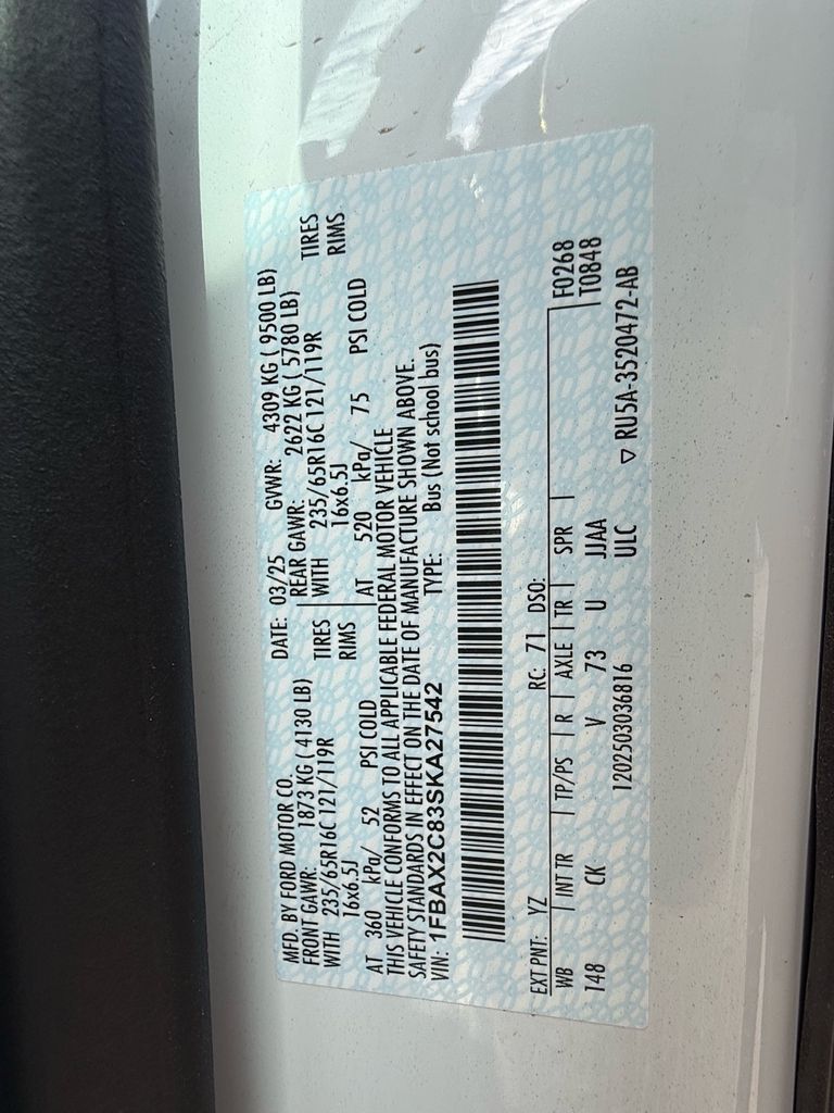 Oxford Wht 2025 Ford Transit-350 XL RWD 3.5L V6 Flex Fuel 10-Speed Automatic with Overdrive