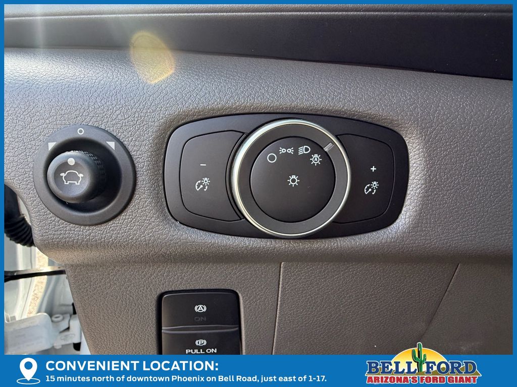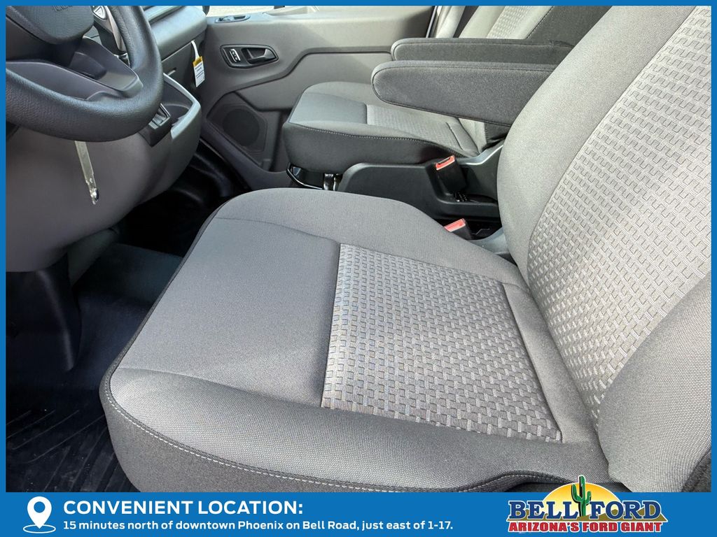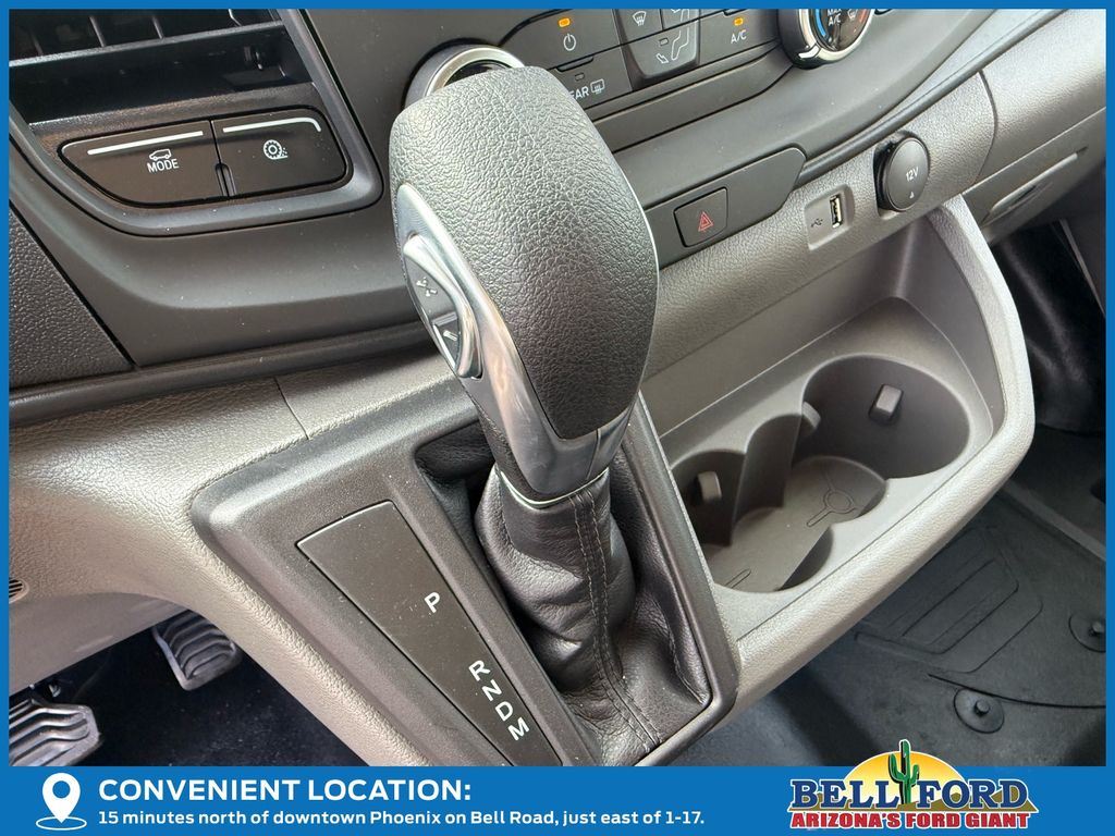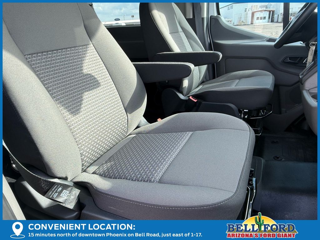 This Ford Transit-350 is equipped with the following options: 15-Passenger Seats, 2 Additional Keys (4 Total), 3.73 Axle Ratio, 3rd row seats: split-bench, 4-Wheel Disc Brakes, 4th-Row Bench Seat, 8 Speakers, ABS brakes, Air Conditioning, AM/FM radio, Auto High-beam Headlights, Brake assist, Cloth Front Bucket Seats, Dark Palazzo Gray Cloth Bucket Seats, Delay-off headlights, Driver door bin, Driver vanity mirror, Driver's Seat Mounted Armrest, Dual front impact airbags, Dual front side impact airbags, Electronic Air Temperature Control, Electronic Stability Control, Front anti-roll bar, Front Bucket Seats, Front Fog Lamps, Front License Plate Bracket, Front reading lights, Front Sensing System, Front wheel independent suspension, Fully automatic headlights, Illuminated entry, Large Center Console, Low tire pressure warning, Occupant sensing airbag, Overhead airbag, Panic alarm, Passenger door bin, Passenger Running Board, Passenger seat mounted armrest, Passenger vanity mirror, Power door mirrors, Power steering, Power windows, Privacy Glass, Radio: AM/FM Stereo w/SYNC 4 & Nav, Rain sensing wipers, Rear air conditioning, Rear window defroster, Rear-Window Defroster, Remote keyless entry, Reverse Sensing System, Side Sensing System, Speed control, Steering wheel mounted audio controls, Tachometer, Telescoping steering wheel, Tilt steering wheel, Traction control, Variably intermittent wipers, and Wheels: 16" Steel w/Full Silver Cover.