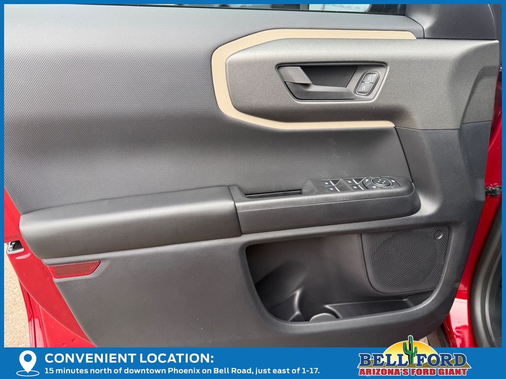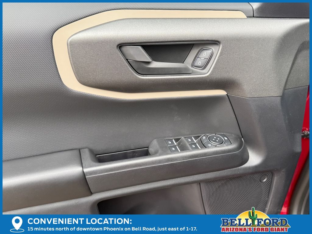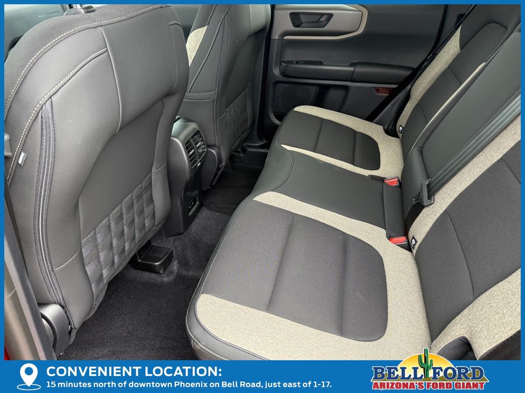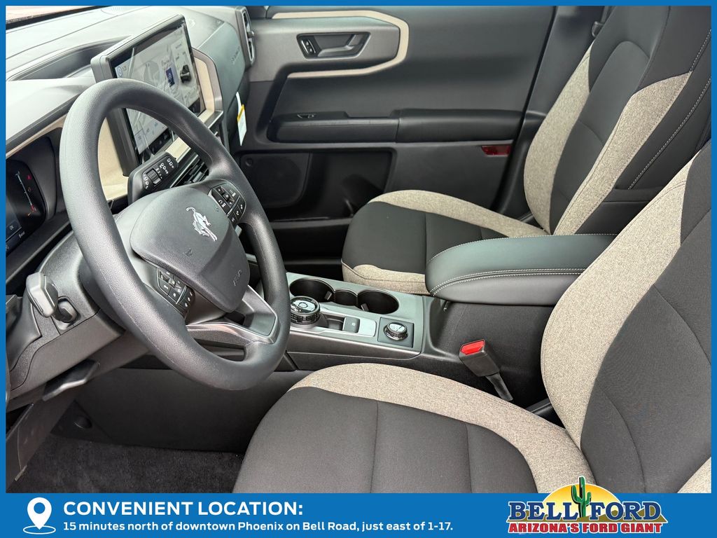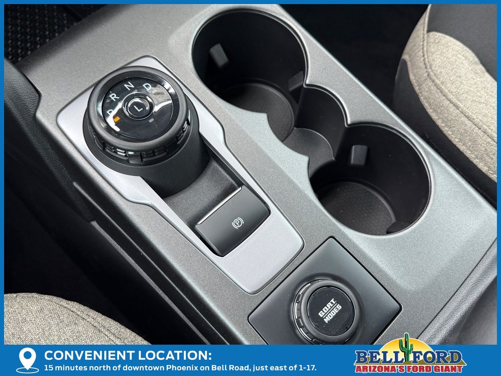 This Ford Bronco Sport is equipped with the following options: Equipment Group 200A Standard Package (AM/FM Stereo, Cloth with Easy-to-Clean Front Bucket Seats, SiriusXM with 360L, SYNC 4 with Enhanced Voice Recognition, and Wheels: 17" Carbonized Gray Painted Aluminum), Ford Connectivity Package (1-Year Included), Internet access capable: 5G Modem - Ford Connectivity Package, 4-Wheel Disc Brakes, 6 Speakers, ABS brakes, Air Conditioning, Alloy wheels, AM/FM radio: SiriusXM with 360L, Apple CarPlay/Android Auto, Auto High-beam Headlights, Automatic temperature control, Brake assist, Compass, Delay-off headlights, Driver door bin, Driver vanity mirror, Dual front impact airbags, Dual front side impact airbags, Electronic Stability Control, Emergency communication system: SYNC 4 911 Assist, Exterior Parking Camera Rear, Four wheel independent suspension, Front anti-roll bar, Front Bucket Seats, Front Center Armrest, Front reading lights, Fully automatic headlights, Heated door mirrors, Illuminated entry, Knee airbag, Low tire pressure warning, Occupant sensing airbag, Outside temperature display, Overhead airbag, Overhead console, Panic alarm, Passenger door bin, Passenger vanity mirror, Power door mirrors, Power steering, Power windows, Radio data system, Rear anti-roll bar, Rear Parking Sensors, Rear reading lights, Rear seat center armrest, Rear window defroster, Rear window wiper, Remote keyless entry, Security system, Speed control, Speed-sensing steering, Speed-Sensitive Wipers, Split folding rear seat, Steering wheel mounted audio controls, Tachometer, Telescoping steering wheel, Tilt steering wheel, Traction control, Trip computer, and Variably intermittent wipers.