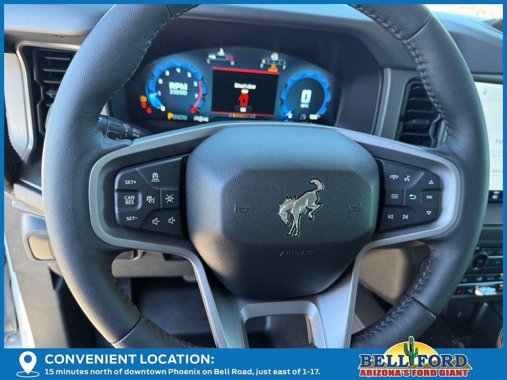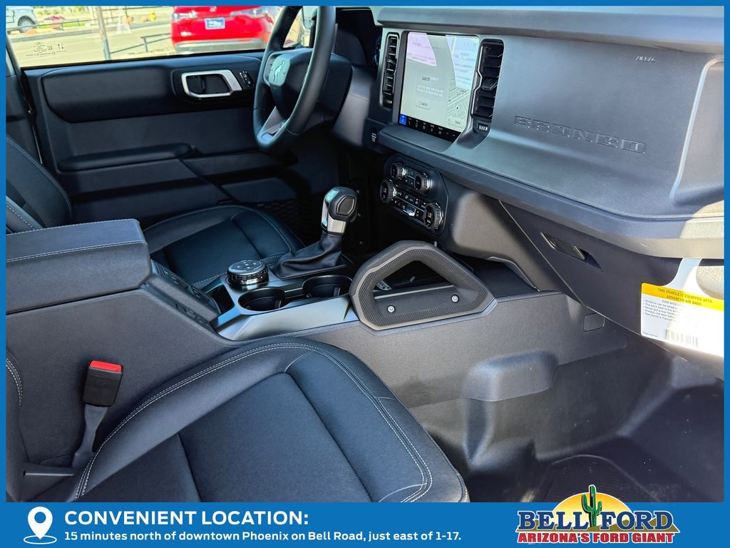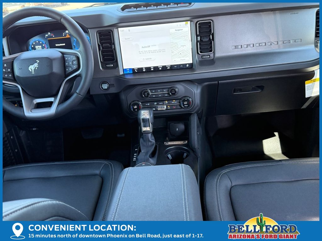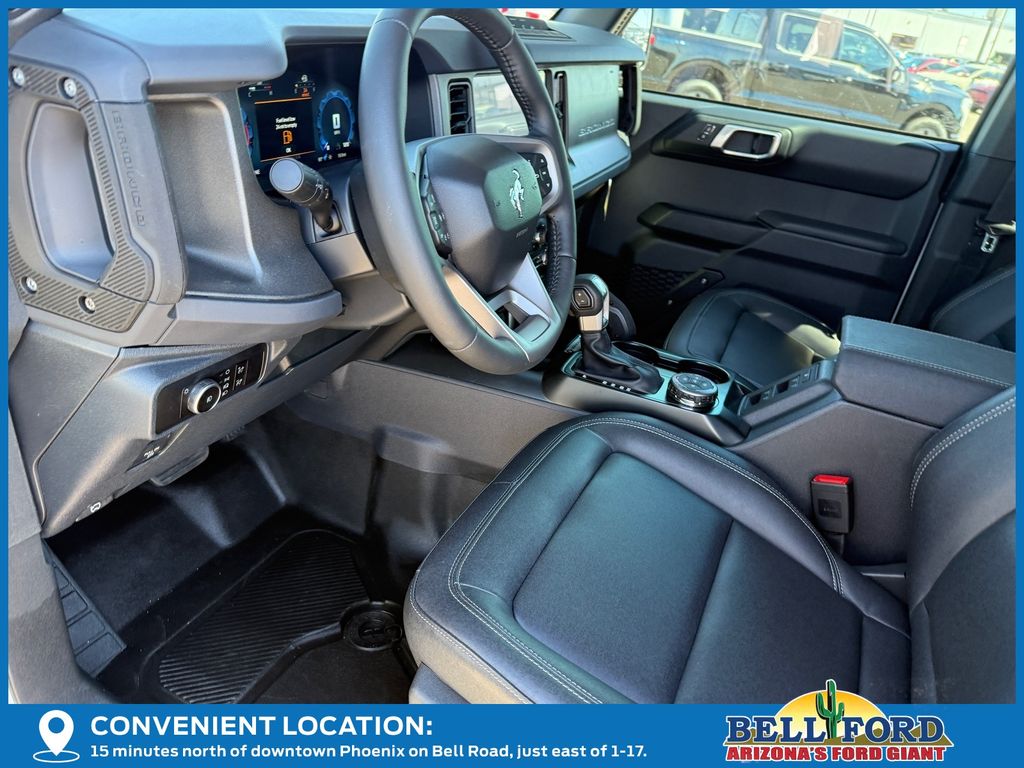 This Ford Bronco is equipped with the following options: Black Appearance Package (Black Molded-in-Color Door Handles, Black Molded-in-Color Sideview Mirror Caps, and Black-Painted Molded-in-Color Grille), Equipment Group 334A Lux Package (2-Door Intelligent Access with Lock/Unlock, 360-Degree Camera, Adaptive Cruise Control, Ambient Footwell Lighting, Connected Navigation, Driver and Front Passenger Illuminated Sliding Visor Vanity Mirrors, Dual Smart Charging USB Ports, Dual-Zone Electronic Automatic Temperature Control, Evasive Steering Assist, Front Parking Sensors, Front Row Heated Seats, Heated Steering Wheel, Information on Demand Panel, Marine Grade Vinyl Heated Bucket Seats, Pro Power Onboard - 400W, Rear Parking Sensors, Sideview Mirrors, and Wheels: 17" Carbonized Gray-Painted Aluminum), Ford Connectivity Package (1-Year Included), Sasquatch Package (Front Stabilizer Disconnect, High Clearance Suspension, and Position-Sensitive Bilstein Shock Absorbers), Trailer Tow Package, 4-Wheel Disc Brakes, 7 Speakers, ABS brakes, Air Conditioning, Alloy wheels, AM/FM radio: SiriusXM with 360L, AM/FM Stereo, Auto High-Beam Headlamps, Auto High-beam Headlights, Auto-dimming Rear-View mirror, BLIS Blind Spot Information System, Brake assist, Compass, Delay-off headlights, Driver door bin, Driver vanity mirror, Dual front impact airbags, Dual front side impact airbags, Electronic Stability Control, Emergency communication system: 911 Assist, Exterior Parking Camera Rear, Front anti-roll bar, Front Bucket Seats, Front Center Armrest, Front fog lights, Front reading lights, Front wheel independent suspension, Fully automatic headlights, Hard Top Sound Deadening Headliner, Heated door mirrors, Heated front seats, Illuminated entry, Integrated roll-over protection, Lane-Keeping System, Leather Shift Knob, Low tire pressure warning, Occupant sensing airbag, Outside temperature display, Overhead airbag, Overhead console, Panic alarm, Passenger door bin, Passenger vanity mirror, Power door mirrors, Power steering, Power windows, Pre-Collision Assist with Automatic Emergency Braking, Radio data system, Rear-View Camera, Rear-Window Defroster and Washer, Remote keyless entry, Security system, Shadow Black Painted Hard Top, SiriusXM with 360L, Speed control, Split folding rear seat, Steering wheel mounted audio controls, SYNC 4, Tachometer, Telescoping steering wheel, Tilt steering wheel, Traction control, Trip computer, Variably intermittent wipers, and Voltmeter. Price includes: $750 - Retail Customer Cash. Exp. 04/30/2026