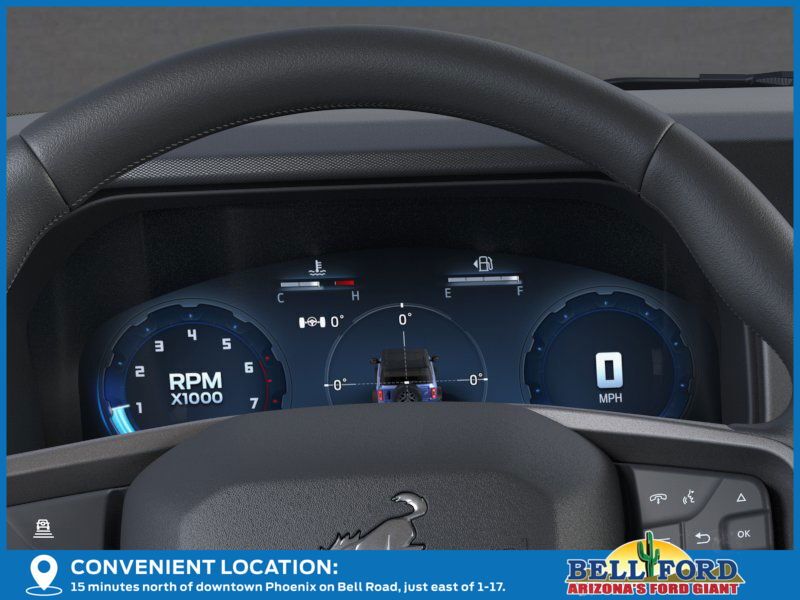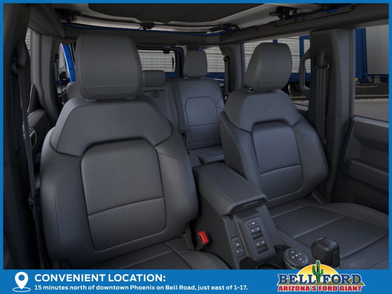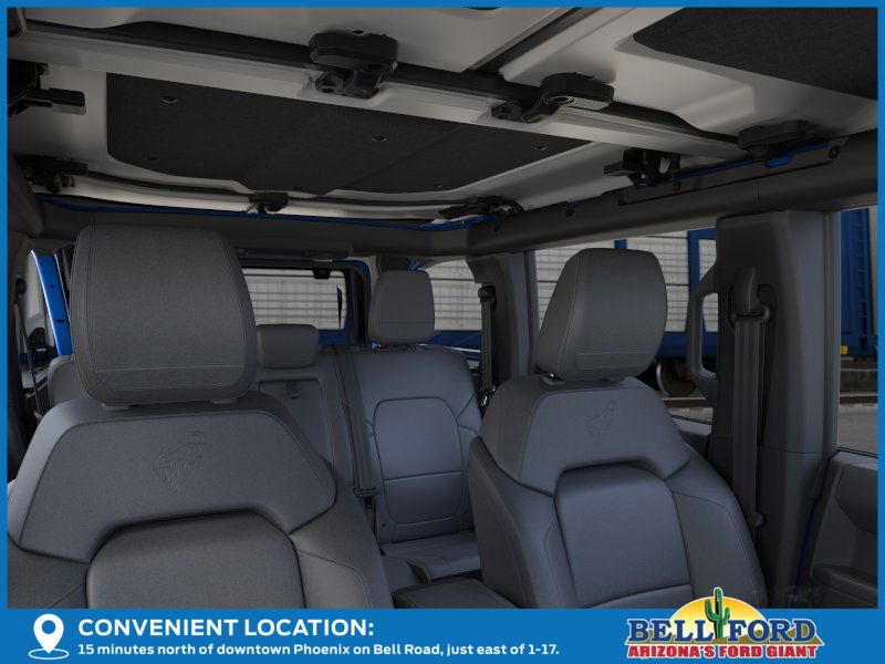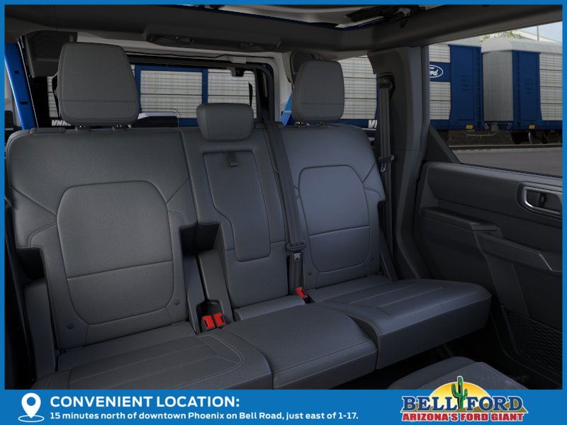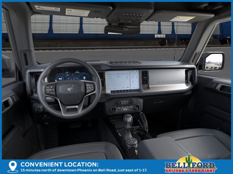 This Ford Bronco is equipped with the following options: Equipment Group 334A Lux Package (2-Door Intelligent Access with Lock/Unlock, 360-Degree Camera, Adaptive Cruise Control, Ambient Footwell Lighting, Connected Navigation, Driver and Front Passenger Illuminated Sliding Visor Vanity Mirrors, Dual Smart Charging USB Ports, Dual-Zone Electronic Automatic Temperature Control, Evasive Steering Assist, Front Parking Sensors, Front Row Heated Seats, Heated Steering Wheel, Information on Demand Panel, Marine Grade Vinyl Heated Bucket Seats, Pro Power Onboard - 400W, Rear Parking Sensors, Sideview Mirrors, and Wheels: 17" Carbonized Gray-Painted Aluminum), Ford Connectivity Package (1-Year Included), Sasquatch Package (Front Stabilizer Disconnect, High Clearance Suspension, and Position-Sensitive Bilstein Shock Absorbers), 4-Wheel Disc Brakes, 7 Speakers, ABS brakes, Air Conditioning, Alloy wheels, AM/FM radio: SiriusXM with 360L, AM/FM Stereo, Auto High-Beam Headlamps, Auto High-beam Headlights, Auto-dimming Rear-View mirror, BLIS Blind Spot Information System, Brake assist, Compass, Delay-off headlights, Driver door bin, Driver vanity mirror, Dual front impact airbags, Dual front side impact airbags, Electronic Stability Control, Emergency communication system: 911 Assist, Exterior Parking Camera Rear, Front anti-roll bar, Front Bucket Seats, Front Center Armrest, Front fog lights, Front reading lights, Front wheel independent suspension, Fully automatic headlights, Hard Top Sound Deadening Headliner, Heated door mirrors, Heated front seats, Illuminated entry, Integrated roll-over protection, Lane-Keeping System, Leather Shift Knob, Low tire pressure warning, Occupant sensing airbag, Outside temperature display, Overhead airbag, Overhead console, Painted Hard Top, Panic alarm, Passenger door bin, Passenger vanity mirror, Power door mirrors, Power steering, Power windows, Pre-Collision Assist with Automatic Emergency Braking, Radio data system, Rear-View Camera, Rear-Window Defroster and Washer, Remote keyless entry, Security system, SiriusXM with 360L, Speed control, Split folding rear seat, Steering wheel mounted audio controls, SYNC 4, Tachometer, Telescoping steering wheel, Tilt steering wheel, Traction control, Trip computer, Variably intermittent wipers, and Voltmeter. Price includes: $750 - Retail Customer Cash. Exp. 04/30/2026