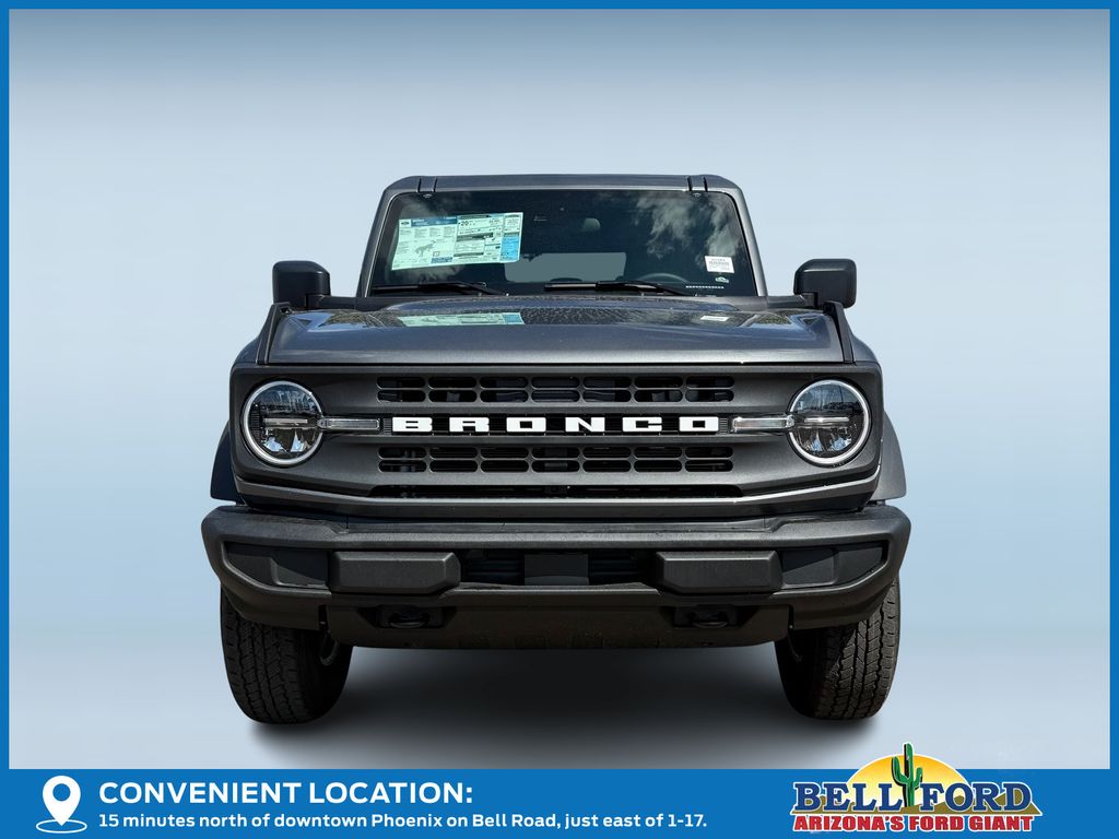 This Ford Bronco is equipped with the following options: Equipment Group 222A Mid Package (2-Door Intelligent Access with Lock/Unlock, AM/FM Stereo, Ambient Footwell Lighting, Cloth Bucket Seats, Connected Navigation, Driver and Front Passenger Illuminated Sliding Visor Vanity Mirrors, Dual Smart Charging USB Ports, Dual-Zone Electronic Automatic Temperature Control, Front Row Heated Seats, Pro Power Onboard - 400W, Rear Parking Sensors, SiriusXM with 360L, SYNC 4, and Wheels: 17" Carbonized Gray-Painted Aluminum), Ford Connectivity Package (1-Year Included), 4-Wheel Disc Brakes, 4.46 Axle Ratio, 7 Speakers, ABS brakes, Air Conditioning, Alloy wheels, AM/FM radio: SiriusXM with 360L, Auto High-Beam Headlamps, Auto High-beam Headlights, BLIS Blind Spot Information System, Brake assist, Carbonized Gray Molded-in-Color Hard Top, Compass, Delay-off headlights, Driver door bin, Driver vanity mirror, Dual front impact airbags, Dual front side impact airbags, Electronic Stability Control, Emergency communication system: 911 Assist, Exterior Parking Camera Rear, Front anti-roll bar, Front Bucket Seats, Front Center Armrest, Front reading lights, Front wheel independent suspension, Fully automatic headlights, Hard Top Sound Deadening Headliner, Heated door mirrors, Illuminated entry, Integrated roll-over protection, Lane-Keeping System, Low tire pressure warning, Occupant sensing airbag, Outside temperature display, Overhead airbag, Overhead console, Panic alarm, Passenger door bin, Passenger vanity mirror, Power door mirrors, Power steering, Power windows, Pre-Collision Assist with Automatic Emergency Braking, Radio data system, Rear-View Camera, Rear-Window Defroster and Washer, Remote keyless entry, Security system, Speed control, Split folding rear seat, Steering wheel mounted audio controls, Tachometer, Telescoping steering wheel, Tilt steering wheel, Traction control, Trip computer, and Variably intermittent wipers. Price includes: $750 - Retail Customer Cash. Exp. 04/30/2026
