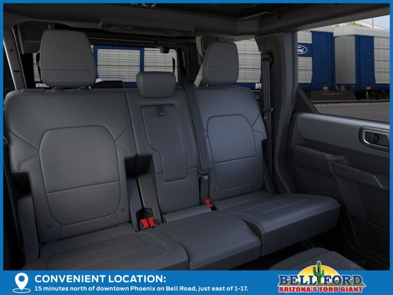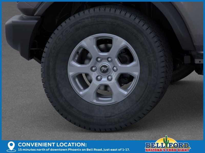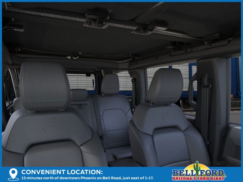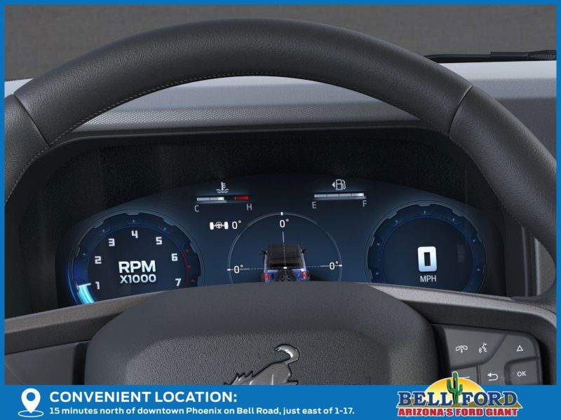 This Ford Bronco is equipped with the following options: Equipment Group 222A Mid Package (2-Door Intelligent Access with Lock/Unlock, AM/FM Stereo, Ambient Footwell Lighting, Cloth Bucket Seats, Connected Navigation, Driver and Front Passenger Illuminated Sliding Visor Vanity Mirrors, Dual Smart Charging USB Ports, Dual-Zone Electronic Automatic Temperature Control, Front Row Heated Seats, Pro Power Onboard - 400W, Rear Parking Sensors, SiriusXM with 360L, SYNC 4, and Wheels: 17" Carbonized Gray-Painted Aluminum), Ford Connectivity Package (1-Year Included), 4-Wheel Disc Brakes, 4.46 Axle Ratio, 7 Speakers, ABS brakes, Air Conditioning, Alloy wheels, AM/FM radio: SiriusXM with 360L, Auto High-Beam Headlamps, Auto High-beam Headlights, BLIS Blind Spot Information System, Brake assist, Carbonized Gray Molded-in-Color Hard Top, Compass, Delay-off headlights, Driver door bin, Driver vanity mirror, Dual front impact airbags, Dual front side impact airbags, Electronic Stability Control, Emergency communication system: 911 Assist, Exterior Parking Camera Rear, Front anti-roll bar, Front Bucket Seats, Front Center Armrest, Front reading lights, Front wheel independent suspension, Fully automatic headlights, Hard Top Sound Deadening Headliner, Heated door mirrors, Illuminated entry, Integrated roll-over protection, Lane-Keeping System, Low tire pressure warning, Occupant sensing airbag, Outside temperature display, Overhead airbag, Overhead console, Panic alarm, Passenger door bin, Passenger vanity mirror, Power door mirrors, Power steering, Power windows, Pre-Collision Assist with Automatic Emergency Braking, Radio data system, Rear-View Camera, Rear-Window Defroster and Washer, Remote keyless entry, Security system, Speed control, Split folding rear seat, Steering wheel mounted audio controls, Tachometer, Telescoping steering wheel, Tilt steering wheel, Traction control, Trip computer, and Variably intermittent wipers. Price includes: $750 - Retail Customer Cash. Exp. 04/30/2026