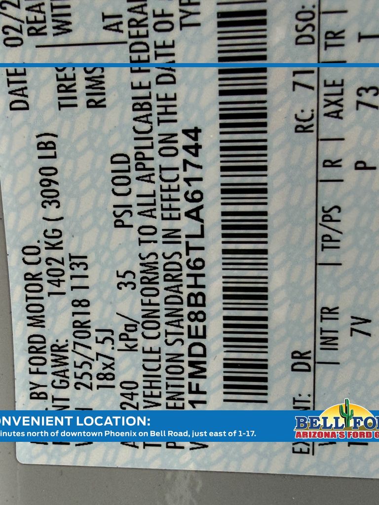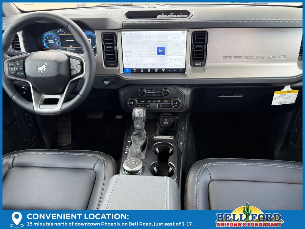This Ford Bronco is equipped with the following options: Equipment Group 314A Lux Package (18" Bright Machined Aluminum Wheels, 3.73 Axle Ratio, 360-Degree Camera, Adaptive Cruise Control, Evasive Steering Assist, Front Parking Sensors, Heated Leather-Trimmed/Vinyl Bucket Seats, Information on Demand Panel, and Sideview Mirrors), Ford Connectivity Package (1-Year Included), Trailer Tow Package, 4-Wheel Disc Brakes, 7 Speakers, ABS brakes, Air Conditioning, Alloy wheels, AM/FM radio: SiriusXM with 360L, AM/FM Stereo, Auto High-beam Headlights, Auto-dimming Rear-View mirror, Automatic temperature control, Brake assist, Carbonized Gray Molded-in-Color Hard Top, Compass, Connected Navigation, Delay-off headlights, Driver door bin, Driver vanity mirror, Dual front impact airbags, Dual front side impact airbags, Electronic Stability Control, Emergency communication system: 911 Assist, Exterior Parking Camera Rear, First Aid Kit, Front anti-roll bar, Front Bucket Seats, Front Center Armrest, Front dual zone A/C, Front fog lights, Front reading lights, Front wheel independent suspension, Fully automatic headlights, Hard Top Sound Deadening Headliner, Heated door mirrors, Heated front seats, Heated steering wheel, Illuminated entry, Integrated roll-over protection, Leather Shift Knob, Low tire pressure warning, Navigation system: Connected Navigation, Occupant sensing airbag, Outside temperature display, Overhead airbag, Overhead console, Panic alarm, Passenger door bin, Passenger vanity mirror, Power door mirrors, Power driver seat, Power passenger seat, Power steering, Power windows, Radio data system, Rear seat center armrest, Rear-Window Defroster and Washer, Remote keyless entry, Security system, SiriusXM with 360L, Speed control, Split folding rear seat, Steering wheel mounted audio controls, SYNC 4, Tachometer, Telescoping steering wheel, Tilt steering wheel, Traction control, Trip computer, Variably intermittent wipers, and Voltmeter. Price includes: $750 - Retail Customer Cash. Exp. 04/30/2026