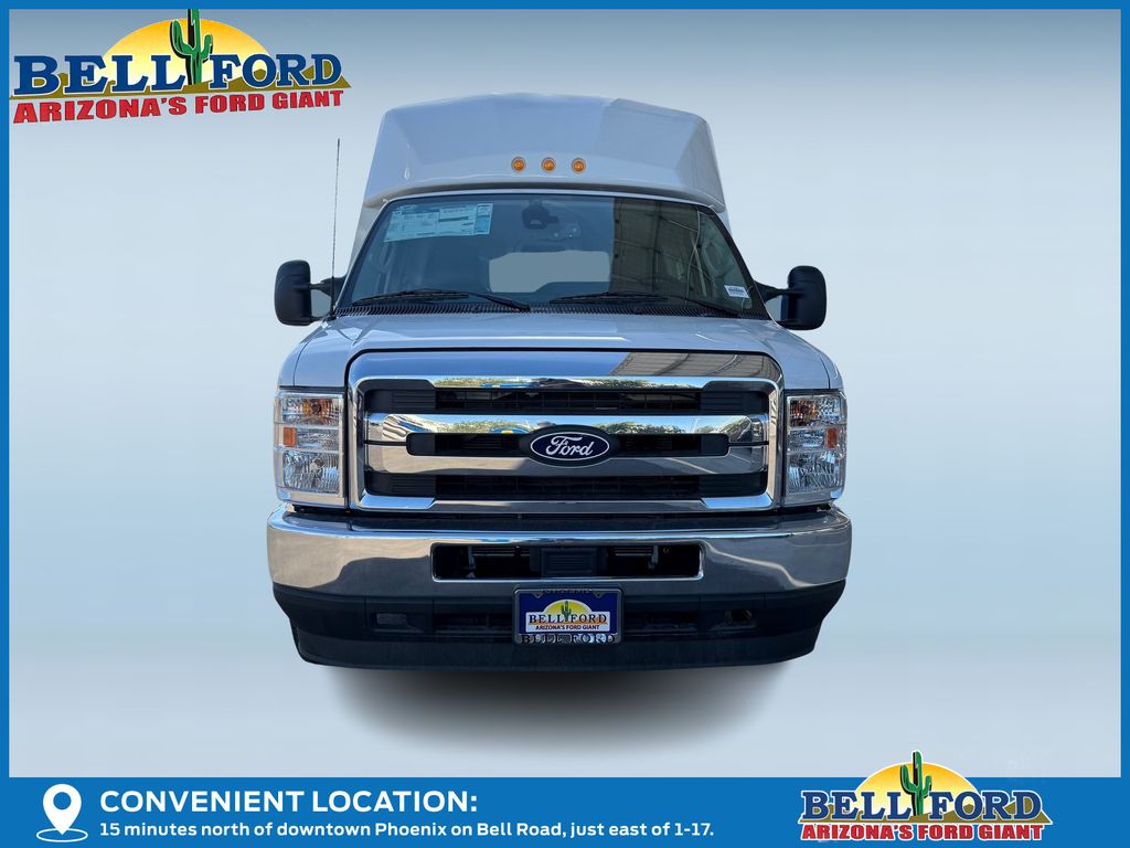 This Ford E-350SD is equipped with the following options: Class I Trailer Towing Package, High Series Exterior Upgrade Package (Chrome Grille and Front Chrome Bumper), Order Code 780A, Power Equipment Group (110V Power Inverter, Remote Keyless Entry, and SecuriLock Passive Anti-Theft System (ePATS)), 2 Speakers, 4-Wheel Disc Brakes, ABS brakes, Air Conditioning, AM/FM radio, Cruise Control, Driver door bin, Driver's Seat Mounted Armrest, Dual front impact airbags, Dual High Back Buckets, Electronic Stability Control, Frame Pucks (Isolators), Front anti-roll bar, Front Black Vinyl Floor Covering, Front Bucket Seats, Front wheel independent suspension, Fully automatic headlights, License Plate Bracket, Low tire pressure warning, Passenger door bin, Passenger seat mounted armrest, Power steering, Radio: AM/FM Stereo w/Clock Display & 2 Speakers, Rear View Camera Kit, Telescoping steering wheel, Tilt steering wheel, Traction control, User-Defined Switches, Variably intermittent wipers, Vinyl Bucket Seats, and Voltmeter.