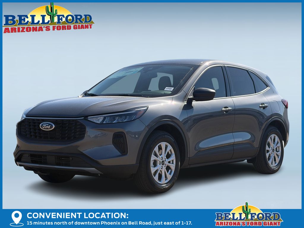 This Ford Escape is equipped with the following options: Equipment Group 200A (3.81 Axle Ratio, 4-Way Manual Front Passenger Seat, 6-Way Manual Driver Seat, Ford App, Radio: AM/FM Stereo with SiriusXM 360L, SYNC 4, Unique Cloth Front Bucket Seats, and Wheels: 17" Shadow Silver-Painted Aluminum), 4-Wheel Disc Brakes, 6 Speakers, ABS brakes, Air Conditioning, Alloy wheels, AM/FM radio: SiriusXM 360L, Auto High-beam Headlights, Automatic temperature control, Brake assist, Bumpers: body-color, Compass, Delay-off headlights, Driver door bin, Driver vanity mirror, Dual front impact airbags, Dual front side impact airbags, Electronic Stability Control, Emergency communication system: SYNC 4 911 Assist, Four wheel independent suspension, Front anti-roll bar, Front Bucket Seats, Front Center Armrest, Front dual zone A/C, Front reading lights, Fully automatic headlights, Illuminated entry, Knee airbag, Low tire pressure warning, Occupant sensing airbag, Outside temperature display, Overhead airbag, Overhead console, Panic alarm, Passenger door bin, Passenger vanity mirror, Power door mirrors, Power Liftgate, Power steering, Power windows, Radio data system, Rear anti-roll bar, Rear reading lights, Rear seat center armrest, Rear window defroster, Rear window wiper, Remote keyless entry, Speed control, Speed-sensing steering, Speed-Sensitive Wipers, Split folding rear seat, Spoiler, Steering wheel mounted audio controls, Tachometer, Telescoping steering wheel, Tilt steering wheel, Traction control, Trip computer, and Variably intermittent wipers. Price includes: $2000 - Bonus Customer Cash. Exp. 01/05/2026