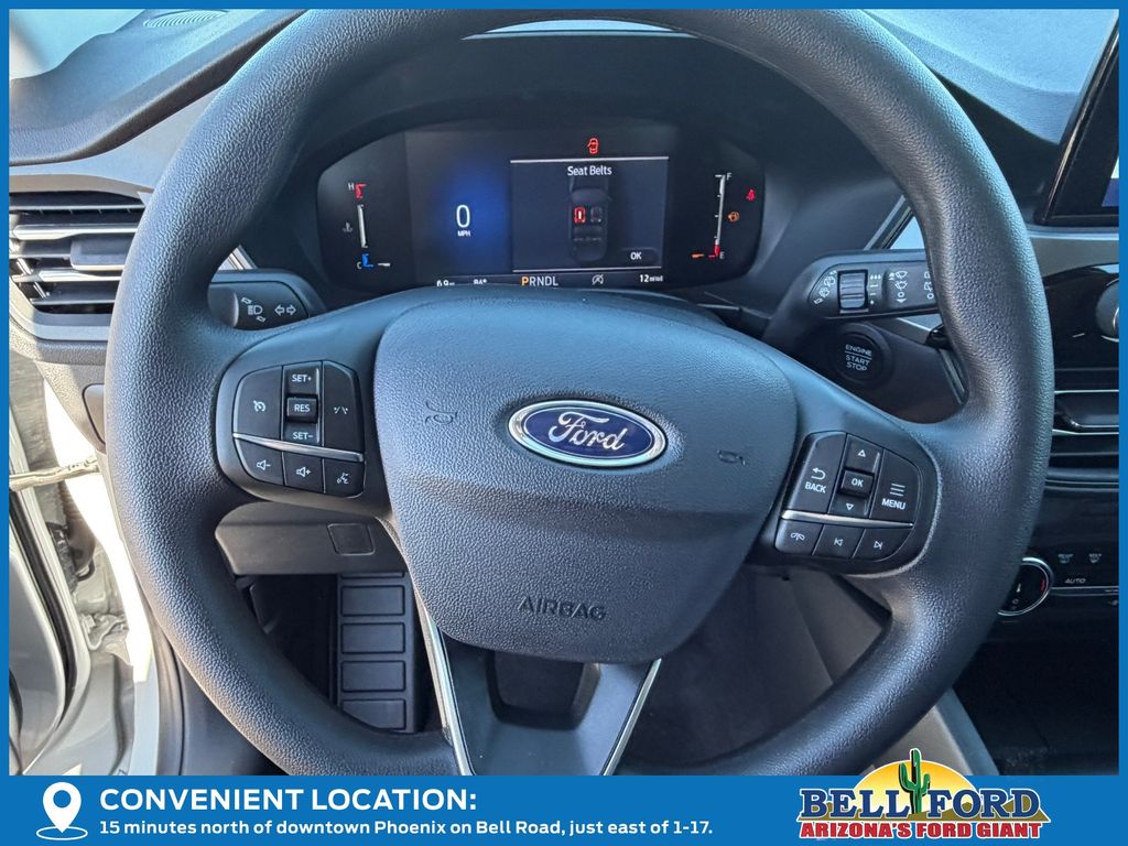 This Ford Escape is equipped with the following options: Equipment Group 200A (3.81 Axle Ratio, 4-Way Manual Front Passenger Seat, 6-Way Manual Driver Seat, Ford App, Radio: AM/FM Stereo with SiriusXM 360L, SYNC 4, Unique Cloth Front Bucket Seats, and Wheels: 17" Shadow Silver-Painted Aluminum), 4-Wheel Disc Brakes, 6 Speakers, ABS brakes, Air Conditioning, Alloy wheels, AM/FM radio: SiriusXM 360L, Auto High-beam Headlights, Automatic temperature control, Brake assist, Bumpers: body-color, Compass, Delay-off headlights, Driver door bin, Driver vanity mirror, Dual front impact airbags, Dual front side impact airbags, Electronic Stability Control, Emergency communication system: SYNC 4 911 Assist, Four wheel independent suspension, Front anti-roll bar, Front Bucket Seats, Front Center Armrest, Front dual zone A/C, Front reading lights, Fully automatic headlights, Illuminated entry, Knee airbag, Low tire pressure warning, Occupant sensing airbag, Outside temperature display, Overhead airbag, Overhead console, Panic alarm, Passenger door bin, Passenger vanity mirror, Power door mirrors, Power steering, Power windows, Radio data system, Rear anti-roll bar, Rear reading lights, Rear seat center armrest, Rear window defroster, Rear window wiper, Remote keyless entry, Speed control, Speed-sensing steering, Speed-Sensitive Wipers, Split folding rear seat, Spoiler, Steering wheel mounted audio controls, Tachometer, Telescoping steering wheel, Tilt steering wheel, Traction control, Trip computer, and Variably intermittent wipers. Price includes: $2000 - Bonus Customer Cash. Exp. 01/05/2026