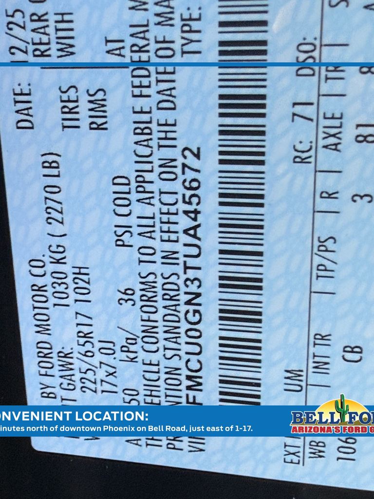 - VIN : 1FMCU0GN3TUA45672