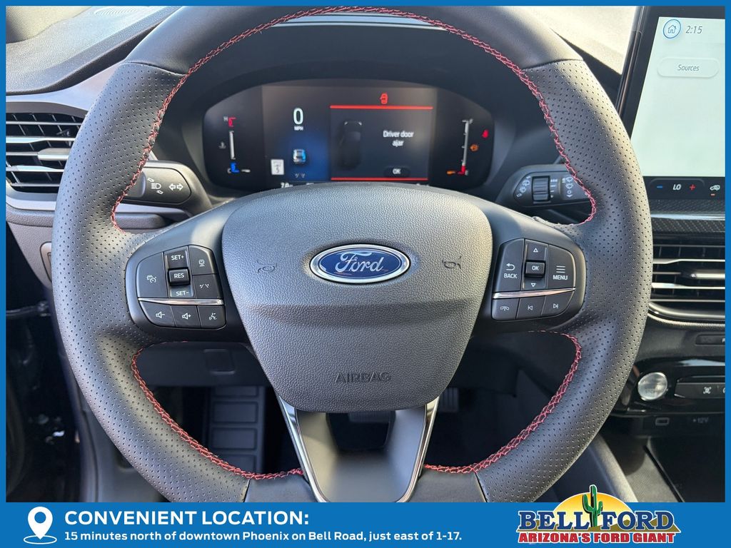 This Ford Escape is equipped with the following options: Equipment Group 300A (3.81 Axle Ratio, 4-Way Manual Front Passenger Seat, 8-Way Power Driver Seat, Ford App, Partial Vinyl/Cloth Front Sport Contour Bucket Seats with Red Stitching, Radio: AM/FM Stereo with SiriusXM 360L, SYNC 4, and Wheels: 18" Rock Metallic Painted Aluminum), Tech Pack #1 (Adaptive Cruise Control with Stop-and-Go, Connected Navigation (1-Year Included), Digital Rear View Camera, Evasive Steering Assist, Ford Co-Pilot360 Assist+, Intersection Assist, Predictive Speed Assist, Rear Parking Sensor, and SYNC 4 with Enhanced Voice Recognition), 4-Wheel Disc Brakes, 6 Speakers, ABS brakes, Air Conditioning, Alloy wheels, AM/FM radio: SiriusXM 360L, Auto High-beam Headlights, Automatic temperature control, Brake assist, Bumpers: body-color, Compass, Delay-off headlights, Driver door bin, Driver vanity mirror, Dual front impact airbags, Dual front side impact airbags, Electronic Stability Control, Emergency communication system: SYNC 4 911 Assist, Four wheel independent suspension, Front anti-roll bar, Front Bucket Seats, Front Center Armrest, Front dual zone A/C, Front reading lights, Fully automatic headlights, Heated steering wheel, Illuminated entry, Knee airbag, Low tire pressure warning, Occupant sensing airbag, Outside temperature display, Overhead airbag, Overhead console, Panic alarm, Passenger door bin, Passenger vanity mirror, Power door mirrors, Power driver seat, Power Liftgate, Power steering, Power windows, Radio data system, Rear anti-roll bar, Rear reading lights, Rear seat center armrest, Rear window defroster, Rear window wiper, Remote keyless entry, Speed control, Speed-sensing steering, Speed-Sensitive Wipers, Split folding rear seat, Spoiler, Sport steering wheel, Steering wheel mounted audio controls, Tachometer, Telescoping steering wheel, Tilt steering wheel, Traction control, Trip computer, and Variably intermittent wipers. Price includes: $2000 - Bonus Customer Cash. Exp. 01/05/2026