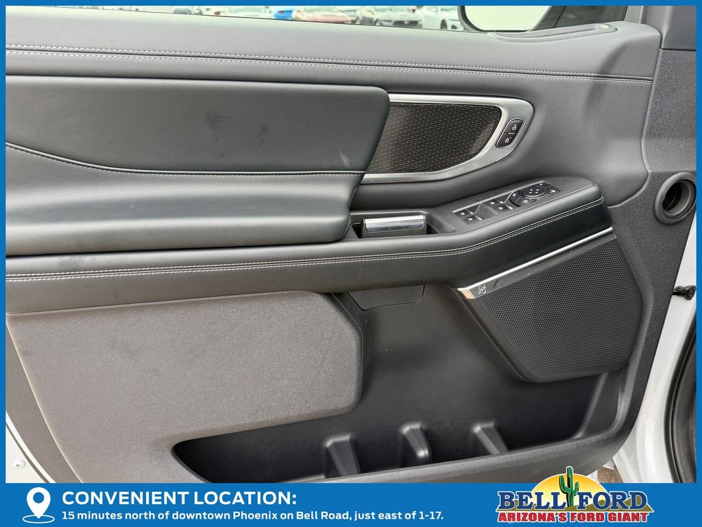 This Ford Expedition is equipped with the following options: Driver's Package (Radio: B&O Play Unleashed and SiriusXM with 360L), Equipment Group 600A Standard Package (2nd Row Power-Folding Captain's Chairs, 3.73 Axle Ratio, BlueCruise Equipped (90-Day Trial), Ford Digital Experience, Heated and Ventilated Leather Front Captain's Chairs, Power Tilt/Telescopic Steering Wheel with Memory, Radio: B&O Sound System by Bang and Olufsen, and Wheels: 20" x 8.5" Ebony Bright Machined Aluminum), Ford Connectivity Package (1-Year Included), Stealth Appearance Package (Black Belt Molding, Black Expedition Lettering on Hood, Black Headlamp Bezel with Ebony Trim Applique, Black Platinum Badge on Tailgate, Black Roof Rails, Carbon Black Front Bumper/Fascia, Rear Side Windows Laminated Glass, and Signature Grille Lighting), Stealth Performance Package (Black Onyx Painted Power Deployable Running Boards, Engine Sound Enhancer, High Flow Exhaust System, and Wheels: 24" x 9.5" Ebony Painted Aluminum), 4WD, 10 Speakers, 3rd row seats: split-bench, 4-Wheel Disc Brakes, ABS brakes, Air Conditioning, Alloy wheels, AM/FM radio: SiriusXM with 360L, Apple CarPlay/Android Auto, Auto High-beam Headlights, Auto-dimming door mirrors, Auto-dimming Rear-View mirror, Automatic temperature control, Brake assist, Bumpers: body-color, Compass, Delay-off headlights, Driver door bin, Driver vanity mirror, Dual front impact airbags, Dual front side impact airbags, Electronic Stability Control, Emergency communication system: 911 Assist, Exterior Parking Camera Rear, Four wheel independent suspension, Front anti-roll bar, Front Bucket Seats, Front Center Armrest, Front dual zone A/C, Front reading lights, Fully automatic headlights, Garage door transmitter, Genuine wood dashboard insert, Genuine wood door panel insert, Heated door mirrors, Heated front seats, Heated rear seats, Heated steering wheel, Illuminated entry, Intersection Assist, Leather steering wheel, Low tire pressure warning, Memory seat, Navigation System, Occupant sensing airbag, Outside temperature display, Overhead airbag, Overhead console, Panic alarm, Passenger door bin, Passenger vanity mirror, Power door mirrors, Power driver seat, Power moonroof: Vista Roof, Power passenger seat, Power steering, Power windows, Radio data system, Rain sensing wipers, Rear air conditioning, Rear anti-roll bar, Rear reading lights, Rear window defroster, Rear window wiper, Reclining 3rd row seat, Remote keyless entry, Security system, Speed control, Speed-sensing steering, Speed-Sensitive Wipers, Split folding rear seat, Spoiler, Steering wheel memory, Steering wheel mounted audio controls, Tachometer, Telescoping steering wheel, Tilt steering wheel, Traction control, Trip computer, Turn signal indicator mirrors, Variably intermittent wipers, Ventilated front seats, Voltmeter, and Wheels: 22" x 9.0" Ebony Bright Machined Face Aluminum.