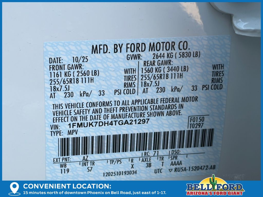 - VIN : 1FMUK7DH4TGA21297