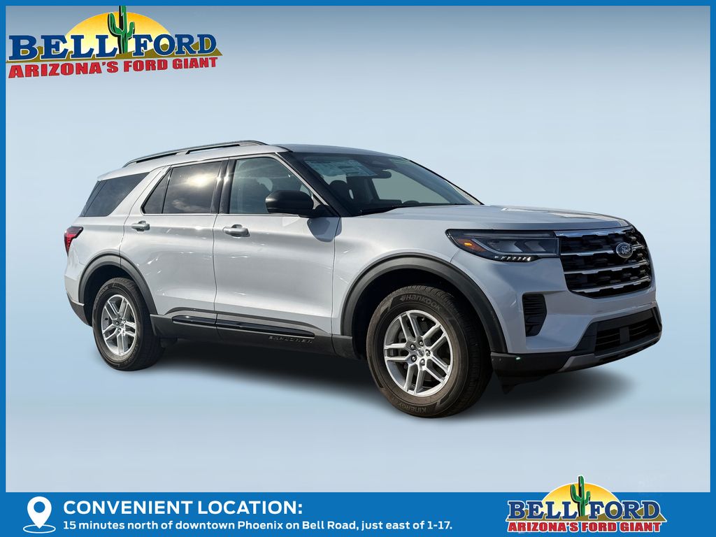 This Ford Explorer is equipped with the following options: 4WD, 2nd Row 35/30/35 Bench with E-Z Entry and Armrest, 3rd row seats: bench, 4-Wheel Disc Brakes, 6 Speakers, ABS brakes, Air Conditioning, Alloy wheels, AM/FM radio: SiriusXM with 360L, AM/FM Stereo, Apple CarPlay/Android Auto, Auto High-beam Headlights, Automatic temperature control, Brake assist, Bumpers: body-color, Compass, Delay-off headlights, Driver door bin, Driver vanity mirror, Dual front impact airbags, Dual front side impact airbags, Electronic Stability Control, Emergency communication system: 911 Assist, Exterior Parking Camera Rear, Four wheel independent suspension, Front anti-roll bar, Front Bucket Seats, Front Center Armrest, Front dual zone A/C, Front reading lights, Fully automatic headlights, Heated door mirrors, Illuminated entry, Knee airbag, Low tire pressure warning, Navigation System, Occupant sensing airbag, Outside temperature display, Overhead airbag, Overhead console, Panic alarm, Passenger door bin, Passenger vanity mirror, Power door mirrors, Power driver seat, Power steering, Power windows, Rear air conditioning, Rear anti-roll bar, Rear reading lights, Rear window defroster, Rear window wiper, Remote keyless entry, Security system, Speed control, Speed-sensing steering, Speed-Sensitive Wipers, Split folding rear seat, Spoiler, Steering wheel mounted audio controls, Tachometer, Telescoping steering wheel, Tilt steering wheel, Traction control, Trip computer, Variably intermittent wipers, and Wheels: 18" Sparkle Silver-Painted Aluminum. Price includes: $1000 - Retail Bonus Cash. Exp. 02/16/2026 $2500 - Retail Customer Cash. Exp. 03/31/2026