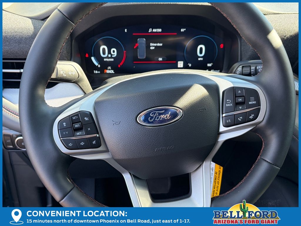 This Ford Explorer is equipped with the following options: 4WD, 2nd Row 35/30/35 Bench with E-Z Entry and Armrest, 3rd row seats: bench, 4-Wheel Disc Brakes, 6 Speakers, ABS brakes, Air Conditioning, Alloy wheels, AM/FM radio: SiriusXM with 360L, AM/FM Stereo, Apple CarPlay/Android Auto, Auto High-beam Headlights, Automatic temperature control, Brake assist, Bumpers: body-color, Compass, Delay-off headlights, Driver door bin, Driver vanity mirror, Dual front impact airbags, Dual front side impact airbags, Electronic Stability Control, Emergency communication system: 911 Assist, Exterior Parking Camera Rear, Four wheel independent suspension, Front anti-roll bar, Front Bucket Seats, Front Center Armrest, Front dual zone A/C, Front reading lights, Fully automatic headlights, Heated door mirrors, Illuminated entry, Knee airbag, Low tire pressure warning, Navigation System, Occupant sensing airbag, Outside temperature display, Overhead airbag, Overhead console, Panic alarm, Passenger door bin, Passenger vanity mirror, Power door mirrors, Power driver seat, Power steering, Power windows, Rear air conditioning, Rear anti-roll bar, Rear reading lights, Rear window defroster, Rear window wiper, Remote keyless entry, Security system, Speed control, Speed-sensing steering, Speed-Sensitive Wipers, Split folding rear seat, Spoiler, Steering wheel mounted audio controls, Tachometer, Telescoping steering wheel, Tilt steering wheel, Traction control, Trip computer, Variably intermittent wipers, and Wheels: 18" Sparkle Silver-Painted Aluminum. Price includes: $3500 - Retail Customer Cash. Exp. 04/30/2026