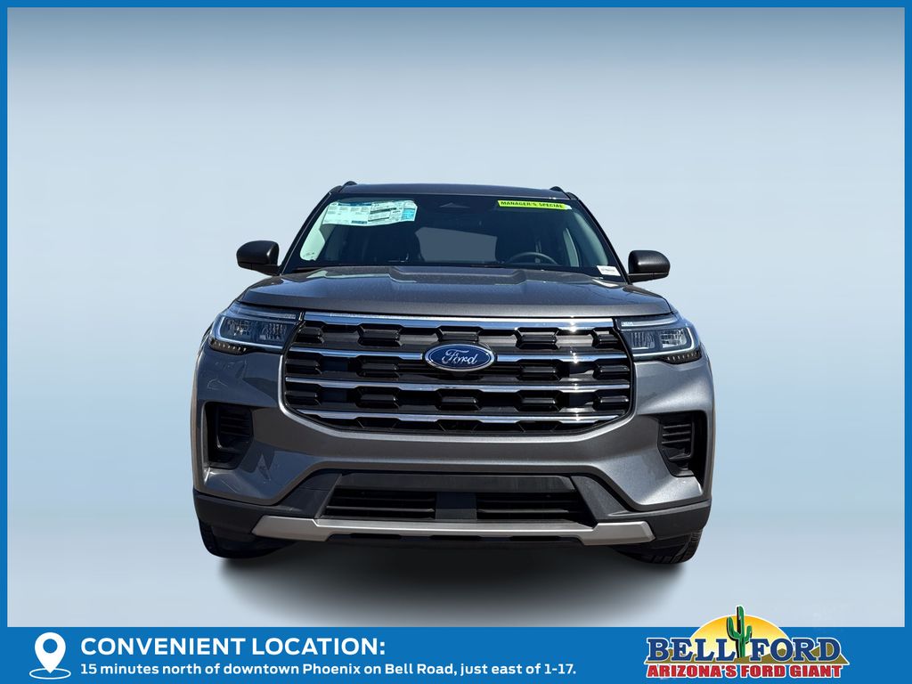 This Ford Explorer is equipped with the following options: 2nd Row 35/30/35 Bench with E-Z Entry and Armrest, 3rd row seats: bench, 4-Wheel Disc Brakes, 6 Speakers, ABS brakes, Air Conditioning, Alloy wheels, AM/FM radio: SiriusXM with 360L, AM/FM Stereo, Apple CarPlay/Android Auto, Auto High-beam Headlights, Automatic temperature control, Brake assist, Bumpers: body-color, Compass, Delay-off headlights, Driver door bin, Driver vanity mirror, Dual front impact airbags, Dual front side impact airbags, Electronic Stability Control, Emergency communication system: 911 Assist, Exterior Parking Camera Rear, Four wheel independent suspension, Front anti-roll bar, Front Bucket Seats, Front Center Armrest, Front dual zone A/C, Front reading lights, Fully automatic headlights, Heated door mirrors, Illuminated entry, Knee airbag, Low tire pressure warning, Navigation System, Occupant sensing airbag, Outside temperature display, Overhead airbag, Overhead console, Panic alarm, Passenger door bin, Passenger vanity mirror, Power door mirrors, Power driver seat, Power steering, Power windows, Rear air conditioning, Rear anti-roll bar, Rear reading lights, Rear window defroster, Rear window wiper, Remote keyless entry, Security system, Speed control, Speed-sensing steering, Speed-Sensitive Wipers, Split folding rear seat, Spoiler, Steering wheel mounted audio controls, Tachometer, Telescoping steering wheel, Tilt steering wheel, Traction control, Trip computer, Variably intermittent wipers, and Wheels: 18" Sparkle Silver-Painted Aluminum. Price includes: $3500 - Retail Customer Cash. Exp. 04/30/2026