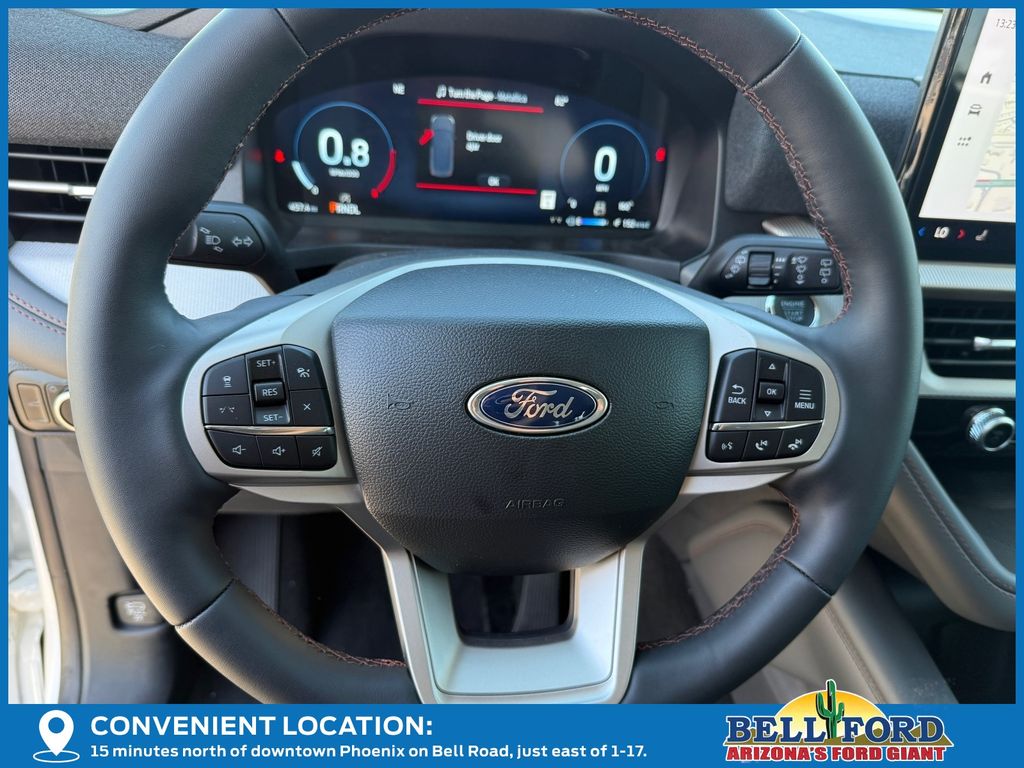 This Ford Explorer is equipped with the following options: 3rd row seats: bench, 4-Wheel Disc Brakes, 6 Speakers, ABS brakes, Air Conditioning, Alloy wheels, AM/FM radio: SiriusXM with 360L, AM/FM Stereo, Apple CarPlay/Android Auto, Auto High-beam Headlights, Automatic temperature control, Brake assist, Bumpers: body-color, Compass, Delay-off headlights, Driver door bin, Driver vanity mirror, Dual front impact airbags, Dual front side impact airbags, Electronic Stability Control, Emergency communication system: 911 Assist, Exterior Parking Camera Rear, Four wheel independent suspension, Front anti-roll bar, Front Bucket Seats, Front Center Armrest, Front dual zone A/C, Front reading lights, Fully automatic headlights, Heated door mirrors, Illuminated entry, Knee airbag, Low tire pressure warning, Navigation System, Occupant sensing airbag, Outside temperature display, Overhead airbag, Overhead console, Panic alarm, Passenger door bin, Passenger vanity mirror, Power door mirrors, Power driver seat, Power steering, Power windows, Rear air conditioning, Rear anti-roll bar, Rear reading lights, Rear window defroster, Rear window wiper, Remote keyless entry, Security system, Speed control, Speed-sensing steering, Speed-Sensitive Wipers, Split folding rear seat, Spoiler, Steering wheel mounted audio controls, Tachometer, Telescoping steering wheel, Tilt steering wheel, Traction control, Trip computer, Variably intermittent wipers, and Wheels: 18" Sparkle Silver-Painted Aluminum. Price includes: $3500 - Retail Customer Cash. Exp. 04/30/2026