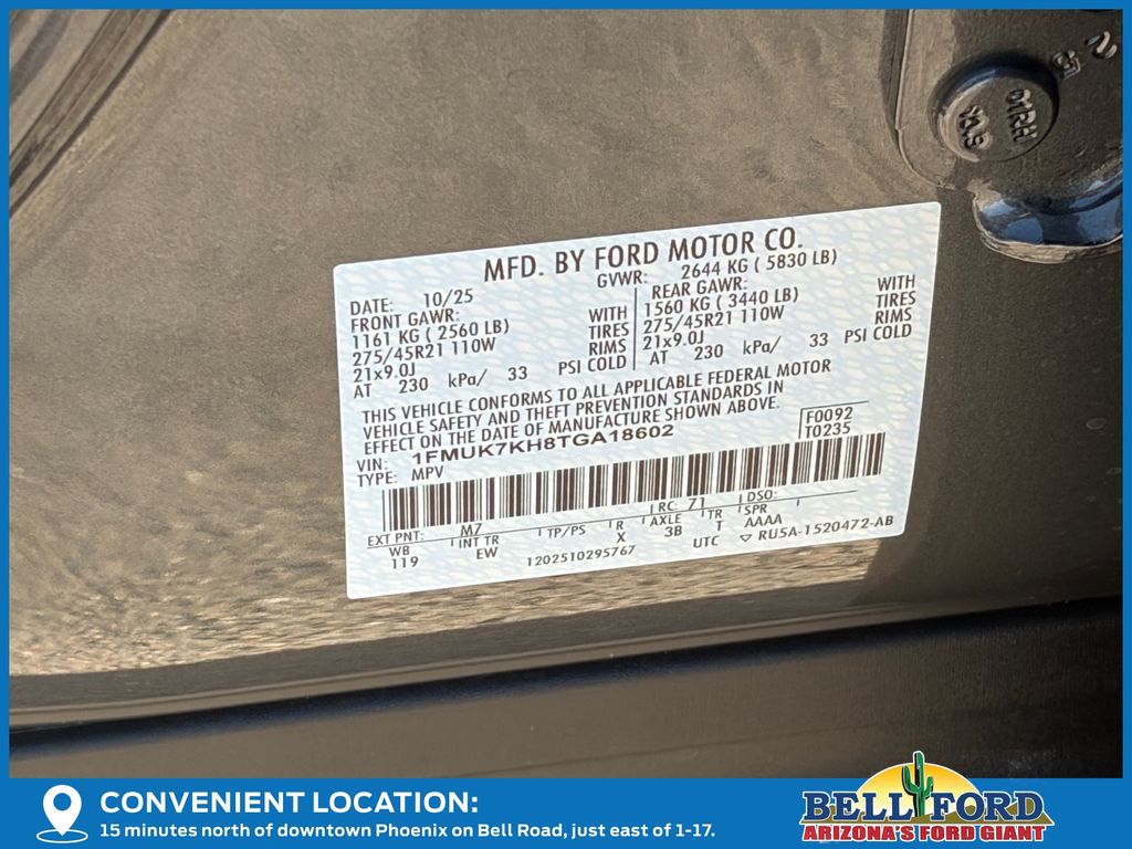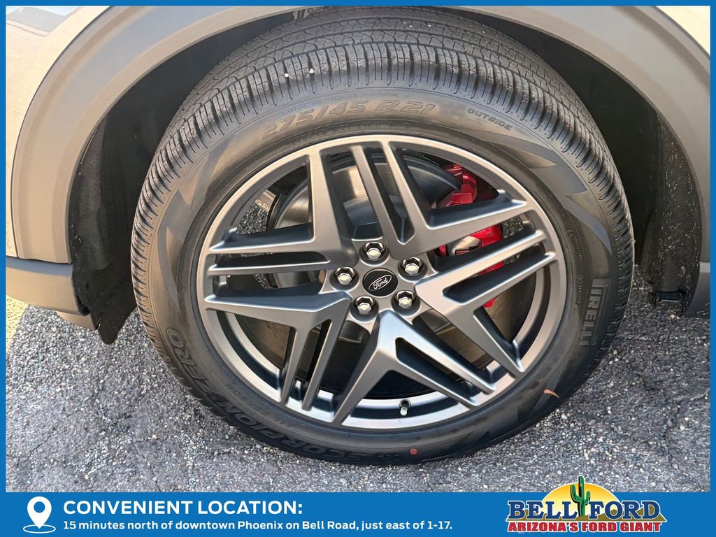 This Ford Explorer is equipped with the following options: Equipment Group 300A Standard Package (Heated Unique Cloth Captain's Chairs, Radio: B&O Sound System by Bang and Olufsen, and Wheels: 20" Ebony-Painted Machined Aluminum), Premium Package (110V/150W AC Power Outlet, 2nd Row Heated Seats, Ambient Lighting, Auto-Dimming Interior Rear-View Mirror, Manual-Folding Sideview Mirrors, Memory Driver's Seat, and Rain-Sensing Wipers (front Only)), ST-Line Street Pack (Performance Brakes, Red Painted Performance Front and Rear Brake Calipers, and Wheels: 21" Magnetite-Painted Aluminum), 10 Speakers, 2nd Row Captain's Chairs w/E-Z Entry and Armrest, 3rd row seats: bench, 4-Wheel Disc Brakes, ABS brakes, Air Conditioning, Alloy wheels, AM/FM radio: SiriusXM with 360L, Apple CarPlay/Android Auto, Auto High-beam Headlights, Automatic temperature control, Brake assist, Bumpers: body-color, Compass, Delay-off headlights, Driver door bin, Driver vanity mirror, Dual front impact airbags, Dual front side impact airbags, Electronic Stability Control, Emergency communication system: 911 Assist, Exterior Parking Camera Rear, Four wheel independent suspension, Front anti-roll bar, Front Bucket Seats, Front Center Armrest, Front dual zone A/C, Front fog lights, Front reading lights, Fully automatic headlights, Garage door transmitter, Heated door mirrors, Heated front seats, Heated steering wheel, Illuminated entry, Knee airbag, Leather steering wheel, Low tire pressure warning, Navigation System, Occupant sensing airbag, Outside temperature display, Overhead airbag, Overhead console, Panic alarm, Passenger door bin, Passenger vanity mirror, Power door mirrors, Power driver seat, Power Liftgate, Power passenger seat, Power steering, Power windows, Rear air conditioning, Rear anti-roll bar, Rear reading lights, Rear window defroster, Rear window wiper, Remote keyless entry, Security system, Speed control, Speed-sensing steering, Speed-Sensitive Wipers, Split folding rear seat, Spoiler, Steering wheel mounted audio controls, Tachometer, Telescoping steering wheel, Tilt steering wheel, Traction control, Trip computer, and Variably intermittent wipers. Price includes: $3500 - Retail Customer Cash. Exp. 04/30/2026