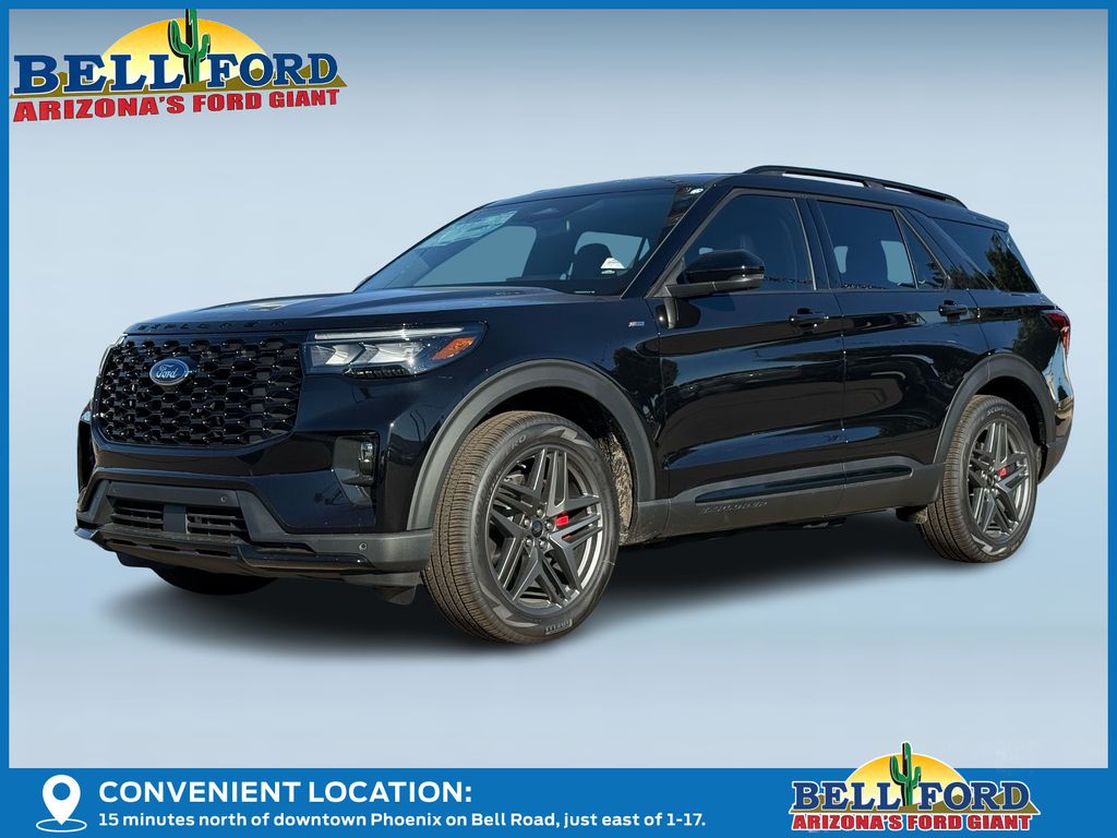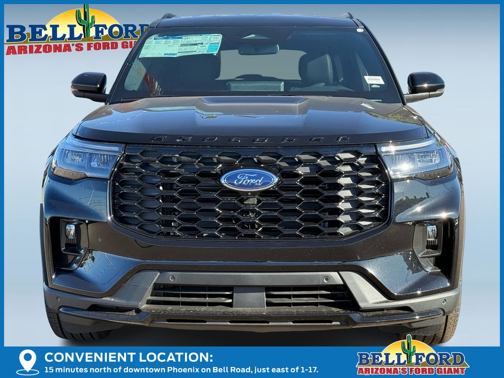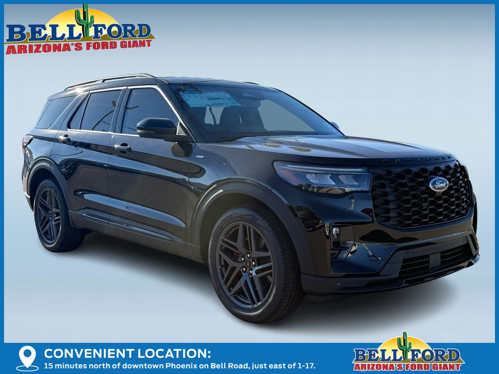 This Ford Explorer is equipped with the following options: Equipment Group 300A Standard Package (Heated Unique Cloth Captain's Chairs, Radio: B&O Sound System by Bang and Olufsen, and Wheels: 20" Ebony-Painted Machined Aluminum), Premium Package (110V/150W AC Power Outlet, 2nd Row Heated Seats, Ambient Lighting, Auto-Dimming Interior Rear-View Mirror, Manual-Folding Sideview Mirrors, Memory Driver's Seat, and Rain-Sensing Wipers (front Only)), ST-Line Street Pack (Performance Brakes, Red Painted Performance Front and Rear Brake Calipers, and Wheels: 21" Magnetite-Painted Aluminum), 10 Speakers, 2nd Row Captain's Chairs w/E-Z Entry and Armrest, 3rd row seats: bench, 4-Wheel Disc Brakes, ABS brakes, Air Conditioning, Alloy wheels, AM/FM radio: SiriusXM with 360L, Apple CarPlay/Android Auto, Auto High-beam Headlights, Automatic temperature control, Brake assist, Bumpers: body-color, Compass, Delay-off headlights, Driver door bin, Driver vanity mirror, Dual front impact airbags, Dual front side impact airbags, Electronic Stability Control, Emergency communication system: 911 Assist, Exterior Parking Camera Rear, Four wheel independent suspension, Front anti-roll bar, Front Bucket Seats, Front Center Armrest, Front dual zone A/C, Front fog lights, Front reading lights, Fully automatic headlights, Garage door transmitter, Heated door mirrors, Heated front seats, Heated steering wheel, Illuminated entry, Knee airbag, Leather steering wheel, Low tire pressure warning, Navigation System, Occupant sensing airbag, Outside temperature display, Overhead airbag, Overhead console, Panic alarm, Passenger door bin, Passenger vanity mirror, Power door mirrors, Power driver seat, Power Liftgate, Power passenger seat, Power steering, Power windows, Rear air conditioning, Rear anti-roll bar, Rear reading lights, Rear window defroster, Rear window wiper, Remote keyless entry, Security system, Speed control, Speed-sensing steering, Speed-Sensitive Wipers, Split folding rear seat, Spoiler, Steering wheel mounted audio controls, Tachometer, Telescoping steering wheel, Tilt steering wheel, Traction control, Trip computer, and Variably intermittent wipers. Price includes: $1000 - Retail Bonus Cash. Exp. 02/16/2026 $2500 - Retail Customer Cash. Exp. 03/31/2026