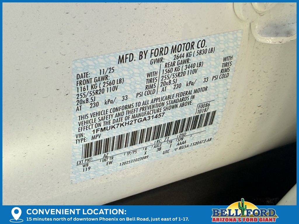 - VIN : 1FMUK7KH2TGA31457