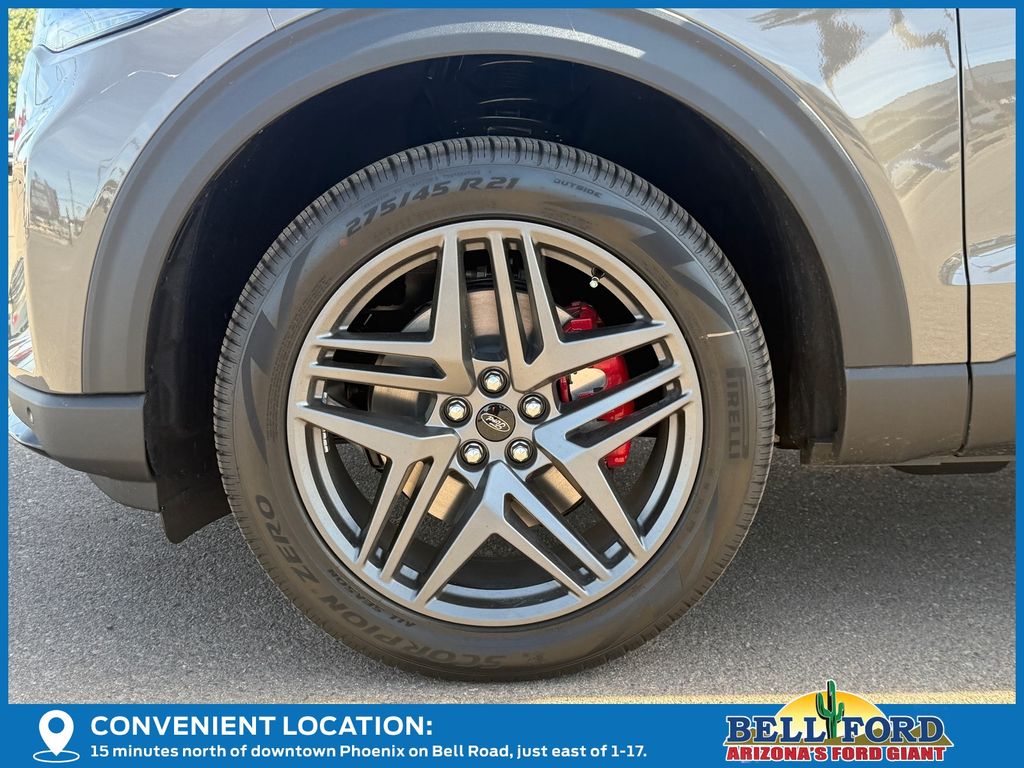 This Ford Explorer is equipped with the following options: Equipment Group 300A Standard Package (Heated Unique Cloth Captain's Chairs, Radio: B&O Sound System by Bang and Olufsen, and Wheels: 20" Ebony-Painted Machined Aluminum), Premium Package (110V/150W AC Power Outlet, 2nd Row Heated Seats, Ambient Lighting, Auto-Dimming Interior Rear-View Mirror, Manual-Folding Sideview Mirrors, Memory Driver's Seat, and Rain-Sensing Wipers (front Only)), ST-Line Street Pack (Performance Brakes, Red Painted Performance Front and Rear Brake Calipers, and Wheels: 21" Magnetite-Painted Aluminum), 4WD, 10 Speakers, 2nd Row Captain's Chairs w/E-Z Entry and Armrest, 3rd row seats: bench, 4-Wheel Disc Brakes, ABS brakes, Air Conditioning, Alloy wheels, AM/FM radio: SiriusXM with 360L, Apple CarPlay/Android Auto, Auto High-beam Headlights, Automatic temperature control, Brake assist, Bumpers: body-color, Compass, Delay-off headlights, Driver door bin, Driver vanity mirror, Dual front impact airbags, Dual front side impact airbags, Electronic Stability Control, Emergency communication system: 911 Assist, Exterior Parking Camera Rear, Four wheel independent suspension, Front anti-roll bar, Front Bucket Seats, Front Center Armrest, Front dual zone A/C, Front fog lights, Front reading lights, Fully automatic headlights, Garage door transmitter, Heated door mirrors, Heated front seats, Heated steering wheel, Illuminated entry, Knee airbag, Leather steering wheel, Low tire pressure warning, Navigation System, Occupant sensing airbag, Outside temperature display, Overhead airbag, Overhead console, Panic alarm, Panoramic Fixed Glass Roof with Power Shade, Passenger door bin, Passenger vanity mirror, Power door mirrors, Power driver seat, Power Liftgate, Power passenger seat, Power steering, Power windows, Rear air conditioning, Rear anti-roll bar, Rear reading lights, Rear window defroster, Rear window wiper, Remote keyless entry, Security system, Speed control, Speed-sensing steering, Speed-Sensitive Wipers, Split folding rear seat, Spoiler, Steering wheel mounted audio controls, Tachometer, Telescoping steering wheel, Tilt steering wheel, Traction control, Trip computer, and Variably intermittent wipers. Price includes: $1000 - Retail Bonus Cash. Exp. 02/16/2026 $2500 - Retail Customer Cash. Exp. 03/31/2026