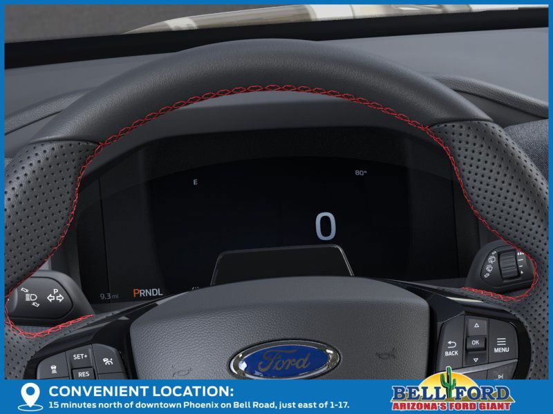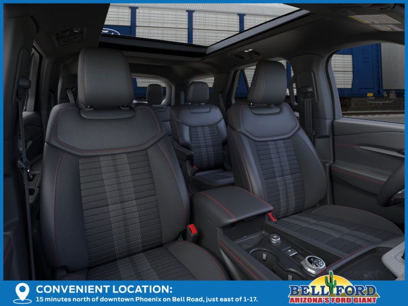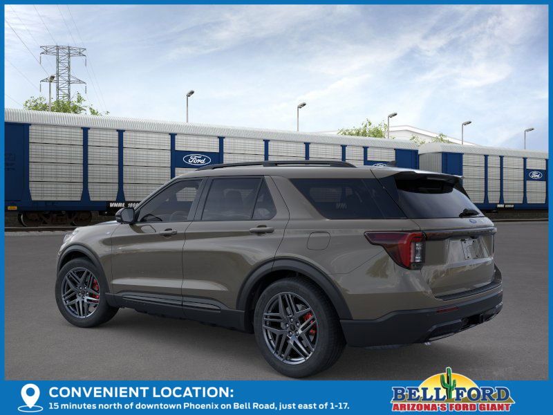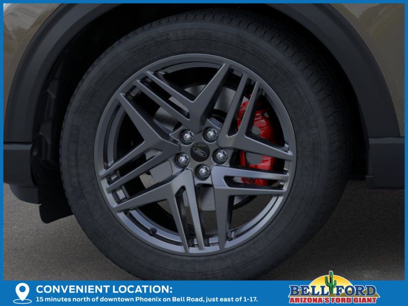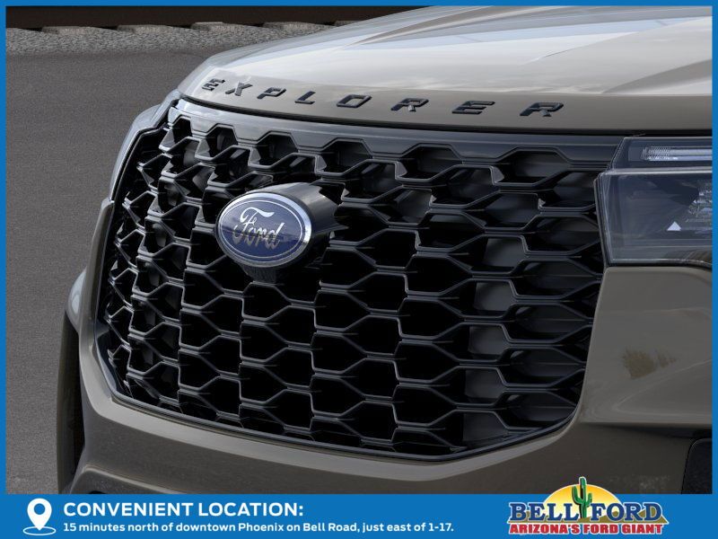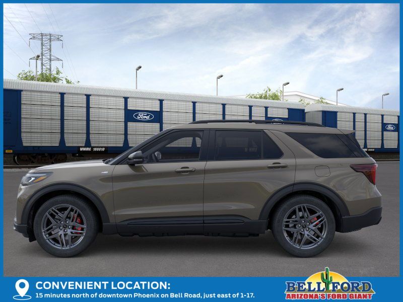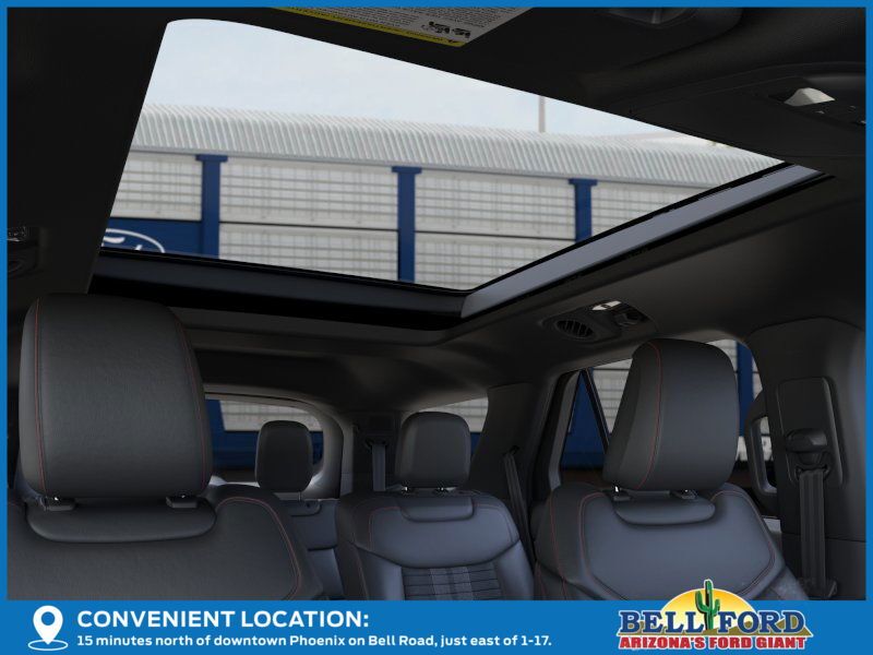 This Ford Explorer is equipped with the following options: Equipment Group 300A Standard Package (Heated Unique Cloth Captain's Chairs, Radio: B&O Sound System by Bang and Olufsen, and Wheels: 20" Ebony-Painted Machined Aluminum), Premium Package (110V/150W AC Power Outlet, 2nd Row Heated Seats, Ambient Lighting, Auto-Dimming Interior Rear-View Mirror, Manual-Folding Sideview Mirrors, Memory Driver's Seat, and Rain-Sensing Wipers (front Only)), ST-Line Street Pack (Performance Brakes, Red Painted Performance Front and Rear Brake Calipers, and Wheels: 21" Magnetite-Painted Aluminum), 4WD, 10 Speakers, 2nd Row Captain's Chairs w/E-Z Entry and Armrest, 3rd row seats: bench, 4-Wheel Disc Brakes, ABS brakes, Air Conditioning, Alloy wheels, AM/FM radio: SiriusXM with 360L, Apple CarPlay/Android Auto, Auto High-beam Headlights, Automatic temperature control, Brake assist, Bumpers: body-color, Compass, Delay-off headlights, Driver door bin, Driver vanity mirror, Dual front impact airbags, Dual front side impact airbags, Electronic Stability Control, Emergency communication system: 911 Assist, Exterior Parking Camera Rear, Four wheel independent suspension, Front anti-roll bar, Front Bucket Seats, Front Center Armrest, Front dual zone A/C, Front fog lights, Front reading lights, Fully automatic headlights, Garage door transmitter, Heated door mirrors, Heated front seats, Heated steering wheel, Illuminated entry, Knee airbag, Leather steering wheel, Low tire pressure warning, Navigation System, Occupant sensing airbag, Outside temperature display, Overhead airbag, Overhead console, Panic alarm, Panoramic Fixed Glass Roof with Power Shade, Passenger door bin, Passenger vanity mirror, Power door mirrors, Power driver seat, Power Liftgate, Power passenger seat, Power steering, Power windows, Rear air conditioning, Rear anti-roll bar, Rear reading lights, Rear window defroster, Rear window wiper, Remote keyless entry, Security system, Speed control, Speed-sensing steering, Speed-Sensitive Wipers, Split folding rear seat, Spoiler, Steering wheel mounted audio controls, Tachometer, Telescoping steering wheel, Tilt steering wheel, Traction control, Trip computer, and Variably intermittent wipers. Price includes: $1000 - Retail Customer Cash. Exp. 01/05/2026