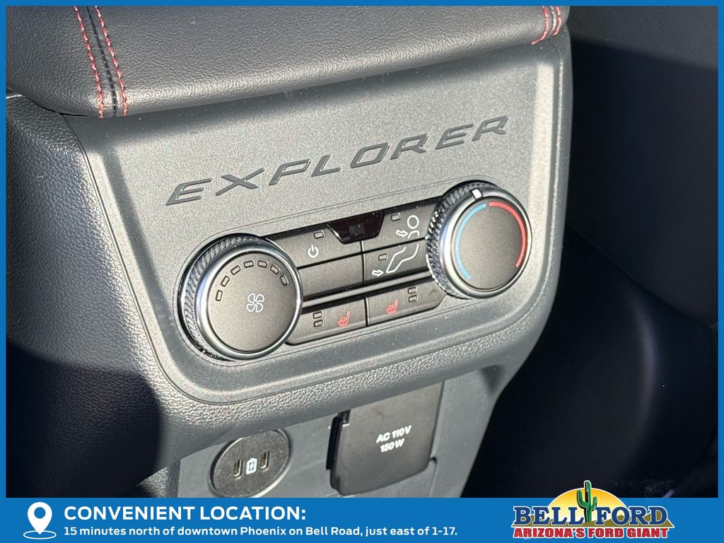 This Ford Explorer is equipped with the following options: Equipment Group 400A Standard Package (Heated/Ventilated Miko Suede Captain's Chairs, Radio: B&O Sound System by Bang and Olufsen, and Wheels: 21" Magnetite-Painted Aluminum), Sun and Sound Package (Multicontour Seats with Front Active Motion, Panoramic Fixed Glass Roof with Power Shade, Radio: B&O Sound System by Bang & Olufsen, and Remote Control Front Windows), 4WD, 10 Speakers, 3rd row seats: bench, 4-Wheel Disc Brakes, ABS brakes, Air Conditioning, Alloy wheels, AM/FM radio: SiriusXM with 360L, Apple CarPlay/Android Auto, Auto High-beam Headlights, Auto-dimming door mirrors, Auto-dimming Rear-View mirror, Automatic temperature control, Brake assist, Bumpers: body-color, Compass, Delay-off headlights, Driver door bin, Driver vanity mirror, Dual front impact airbags, Dual front side impact airbags, Electronic Stability Control, Emergency communication system: 911 Assist, Exterior Parking Camera Rear, Four wheel independent suspension, Front anti-roll bar, Front Bucket Seats, Front Center Armrest, Front dual zone A/C, Front fog lights, Front reading lights, Fully automatic headlights, Garage door transmitter, Heated door mirrors, Heated front seats, Heated rear seats, Heated steering wheel, Illuminated entry, Knee airbag, Leather steering wheel, Low tire pressure warning, Memory seat, Navigation System, Occupant sensing airbag, Outside temperature display, Overhead airbag, Overhead console, Panic alarm, Passenger door bin, Passenger vanity mirror, Power door mirrors, Power driver seat, Power Liftgate, Power passenger seat, Power steering, Power windows, Rain sensing wipers, Rear air conditioning, Rear anti-roll bar, Rear reading lights, Rear window defroster, Rear window wiper, Remote keyless entry, Security system, Speed control, Speed-sensing steering, Speed-Sensitive Wipers, Split folding rear seat, Spoiler, Sport steering wheel, Steering wheel mounted audio controls, Tachometer, Telescoping steering wheel, Tilt steering wheel, Traction control, Trip computer, Turn signal indicator mirrors, Variably intermittent wipers, and Ventilated front seats. Price includes: $1000 - Retail Bonus Cash. Exp. 02/16/2026 $2500 - Retail Customer Cash. Exp. 03/31/2026
