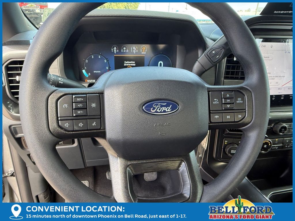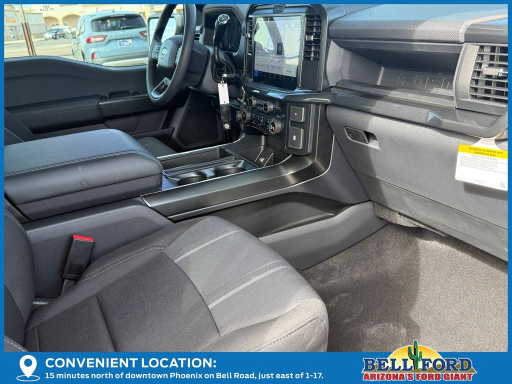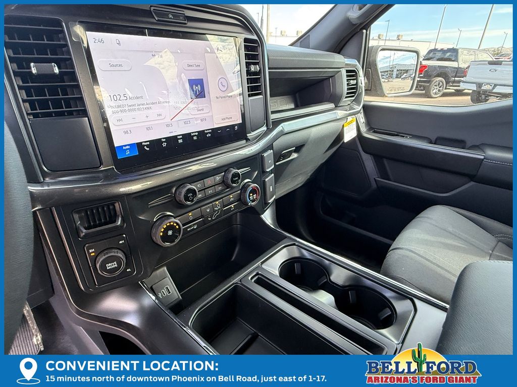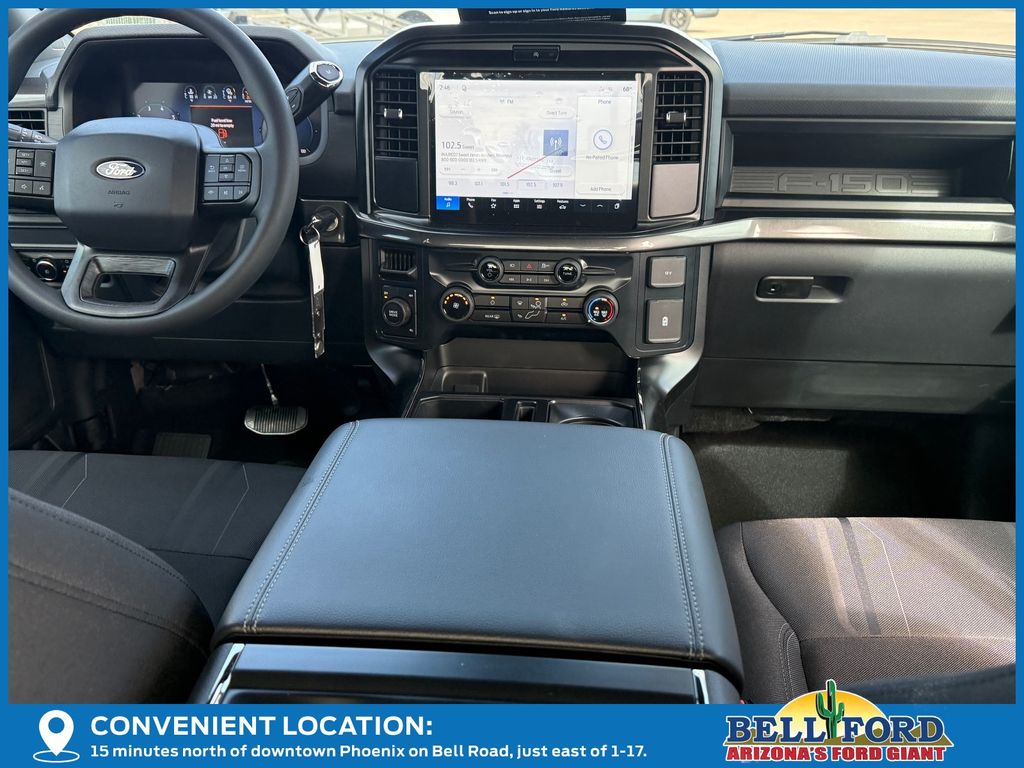 This Ford F-150 is equipped with the following options: Equipment Group 200A Mid (12" Cluster Display, 3.55 Axle Ratio, LED Fog Lamps with LED Cornering Lamp, Radio: AM/FM Stereo with SiriusXM 360L, SYNC 4 with Enhanced Voice Recognition, Unique Sport Cloth 40/Console/40 Front-Seats, and Wheels: 20" Dark Gray Aluminum), Ford Connectivity Package (1-Year Included), GVWR: 6,650 lbs Payload Package, Internet access capable: 5G Modem - Ford Connectivity Package, 4WD, 4-Wheel Disc Brakes, 6 Speakers, ABS brakes, Air Conditioning, Alloy wheels, AM/FM radio: SiriusXM with 360L, Auto High-beam Headlights, Brake assist, Bumpers: body-color, Compass, Delay-off headlights, Driver door bin, Dual front impact airbags, Dual front side impact airbags, Electronic Stability Control, Emergency communication system: SYNC 4 911 Assist, Front anti-roll bar, Front Bucket Seats, Front Center Armrest, Front reading lights, Front wheel independent suspension, Fully automatic headlights, Heated door mirrors, Illuminated entry, Low tire pressure warning, Occupant sensing airbag, Outside temperature display, Overhead airbag, Overhead console, Panic alarm, Passenger door bin, Passenger vanity mirror, Power door mirrors, Power steering, Power windows, Radio data system, Rear step bumper, Rear window defroster, Remote keyless entry, Security system, Speed control, Split folding rear seat, Steering wheel mounted audio controls, Tachometer, Telescoping steering wheel, Tilt steering wheel, Traction control, Trip computer, Variably intermittent wipers, and Wheels: 18" Gloss Black. Price includes: $2500 - Retail Customer Cash. Exp. 04/30/2026