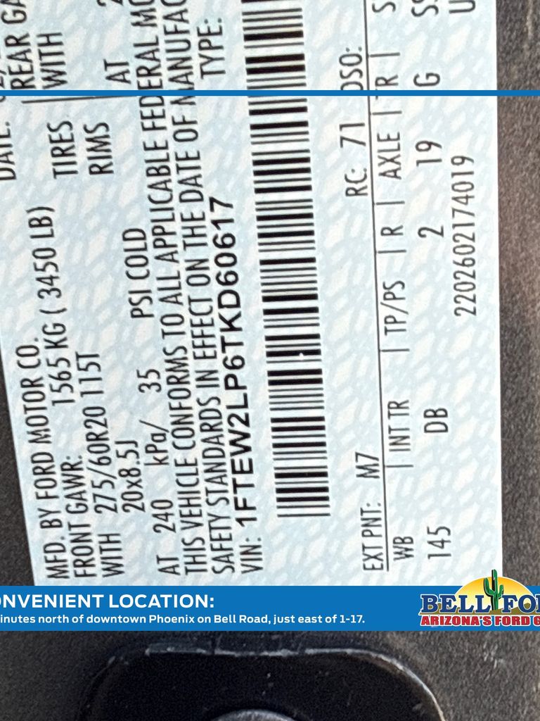 - VIN : 1FTEW2LP6TKD60617