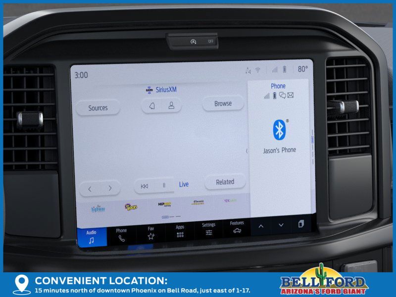 This Ford F-150 is equipped with the following options: Equipment Group 200A Mid (12" Cluster Display, 3.55 Axle Ratio, LED Fog Lamps with LED Cornering Lamp, Radio: AM/FM Stereo with SiriusXM 360L, SYNC 4 with Enhanced Voice Recognition, Unique Sport Cloth 40/Console/40 Front-Seats, and Wheels: 20" Dark Gray Aluminum), Ford Connectivity Package (1-Year Included), GVWR: 6,426 lbs Payload Package, Internet access capable: 5G Modem - Ford Connectivity Package, 4-Wheel Disc Brakes, 6 Speakers, ABS brakes, Air Conditioning, Alloy wheels, AM/FM radio: SiriusXM with 360L, Auto High-beam Headlights, Brake assist, Bumpers: body-color, Compass, Delay-off headlights, Driver door bin, Dual front impact airbags, Dual front side impact airbags, Electronic Stability Control, Emergency communication system: SYNC 4 911 Assist, Front anti-roll bar, Front Bucket Seats, Front Center Armrest, Front reading lights, Front wheel independent suspension, Fully automatic headlights, Heated door mirrors, Illuminated entry, Low tire pressure warning, Occupant sensing airbag, Outside temperature display, Overhead airbag, Overhead console, Panic alarm, Passenger door bin, Passenger vanity mirror, Power door mirrors, Power steering, Power windows, Radio data system, Rear step bumper, Rear window defroster, Remote keyless entry, Security system, Speed control, Split folding rear seat, Steering wheel mounted audio controls, Tachometer, Telescoping steering wheel, Tilt steering wheel, Traction control, Trip computer, Variably intermittent wipers, and Wheels: 18" Gloss Black. Price includes: $2500 - Retail Customer Cash. Exp. 04/30/2026