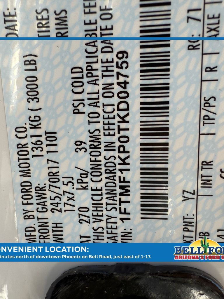 This Ford F-150 is equipped with the following options: Equipment Group 101A Standard (3.55 Axle Ratio, Cloth 40/20/40 Front Seat, Radio: AM/FM Stereo with SiriusXM 360L, SYNC 4 with Enhanced Voice Recognition, and Wheels: 17" Silver Steel), Ford Connectivity Package (1-Year Included), GVWR: 6,220 Lb Payload Package, Internet access capable: 5G Modem - Ford Connectivity Package, 4 Speakers, 4-Wheel Disc Brakes, ABS brakes, Air Conditioning, AM/FM radio: SiriusXM with 360L, Auto High-beam Headlights, Brake assist, Compass, Delay-off headlights, Driver door bin, Dual front impact airbags, Dual front side impact airbags, Electronic Stability Control, Emergency communication system: SYNC 4 911 Assist, Front anti-roll bar, Front Center Armrest, Front reading lights, Front wheel independent suspension, Fully automatic headlights, Heated door mirrors, Illuminated entry, Low tire pressure warning, Occupant sensing airbag, Outside temperature display, Overhead airbag, Overhead console, Panic alarm, Passenger door bin, Passenger vanity mirror, Power door mirrors, Power steering, Power windows, Radio data system, Rear step bumper, Remote keyless entry, Security system, Speed control, Steering wheel mounted audio controls, Tachometer, Telescoping steering wheel, Tilt steering wheel, Traction control, Trip computer, and Variably intermittent wipers. Price includes: $500 - Retail Customer Cash. Exp. 04/30/2026