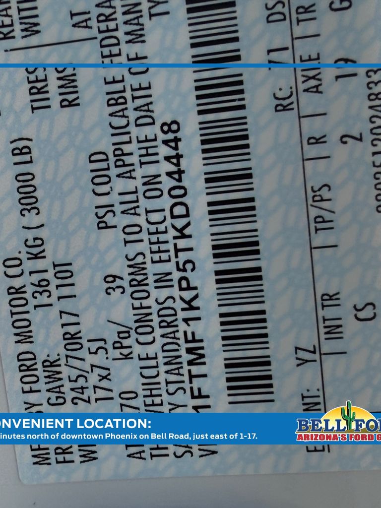 This Ford F-150 is equipped with the following options: Equipment Group 101A Standard (3.55 Axle Ratio, Cloth 40/20/40 Front Seat, Radio: AM/FM Stereo with SiriusXM 360L, SYNC 4 with Enhanced Voice Recognition, and Wheels: 17" Silver Steel), Ford Connectivity Package (1-Year Included), GVWR: 6,220 Lb Payload Package, Internet access capable: 5G Modem - Ford Connectivity Package, 4 Speakers, 4-Wheel Disc Brakes, ABS brakes, Air Conditioning, AM/FM radio: SiriusXM with 360L, Auto High-beam Headlights, Brake assist, Compass, Delay-off headlights, Driver door bin, Dual front impact airbags, Dual front side impact airbags, Electronic Stability Control, Emergency communication system: SYNC 4 911 Assist, Front anti-roll bar, Front Center Armrest, Front reading lights, Front wheel independent suspension, Fully automatic headlights, Heated door mirrors, Illuminated entry, Low tire pressure warning, Occupant sensing airbag, Outside temperature display, Overhead airbag, Overhead console, Panic alarm, Passenger door bin, Passenger vanity mirror, Power door mirrors, Power steering, Power windows, Radio data system, Rear step bumper, Remote keyless entry, Security system, Speed control, Steering wheel mounted audio controls, Tachometer, Telescoping steering wheel, Tilt steering wheel, Traction control, Trip computer, and Variably intermittent wipers. Price includes: $500 - Retail Customer Cash. Exp. 04/30/2026