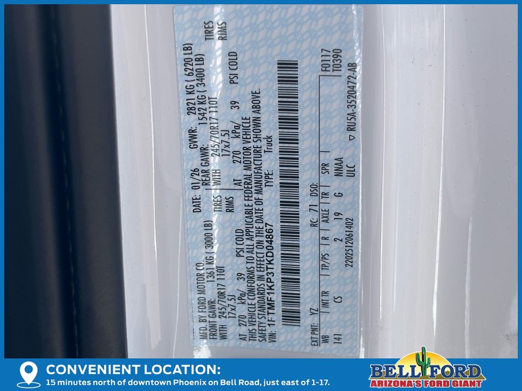 - VIN : 1FTMF1KP3TKD04867