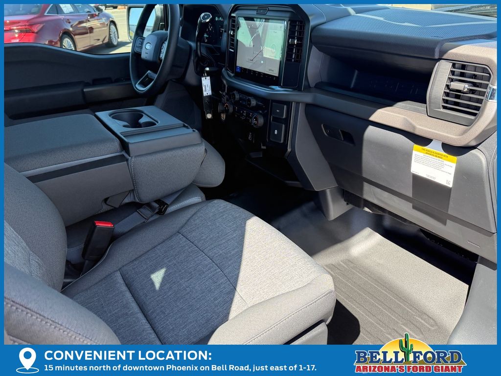 This Ford F-150 is equipped with the following options: Equipment Group 101A Standard (3.55 Axle Ratio, Cloth 40/20/40 Front Seat, Radio: AM/FM Stereo with SiriusXM 360L, SYNC 4 with Enhanced Voice Recognition, and Wheels: 17" Silver Steel), Ford Connectivity Package (1-Year Included), GVWR: 6,365 lbs Payload Package, Internet access capable: 5G Modem - Ford Connectivity Package, 4-Wheel Disc Brakes, 6 Speakers, ABS brakes, Air Conditioning, AM/FM radio: SiriusXM with 360L, Auto High-beam Headlights, Brake assist, Compass, Delay-off headlights, Driver door bin, Dual front impact airbags, Dual front side impact airbags, Electronic Stability Control, Emergency communication system: SYNC 4 911 Assist, Front anti-roll bar, Front Center Armrest, Front reading lights, Front wheel independent suspension, Fully automatic headlights, Heated door mirrors, Illuminated entry, Low tire pressure warning, Occupant sensing airbag, Outside temperature display, Overhead airbag, Overhead console, Panic alarm, Passenger door bin, Passenger vanity mirror, Power door mirrors, Power steering, Power windows, Radio data system, Rear step bumper, Remote keyless entry, Security system, Speed control, Split folding rear seat, Steering wheel mounted audio controls, Tachometer, Telescoping steering wheel, Tilt steering wheel, Traction control, Trip computer, and Variably intermittent wipers. Price includes: $500 - Retail Customer Cash. Exp. 04/30/2026
