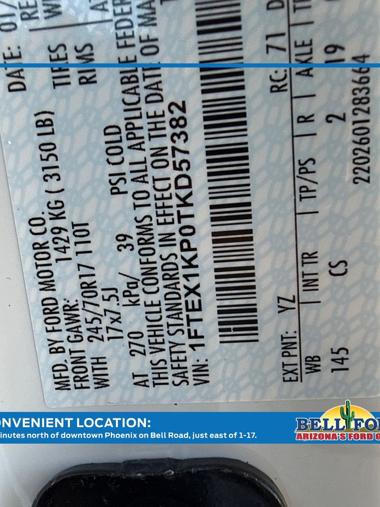 - VIN : 1FTEX1KP0TKD57382