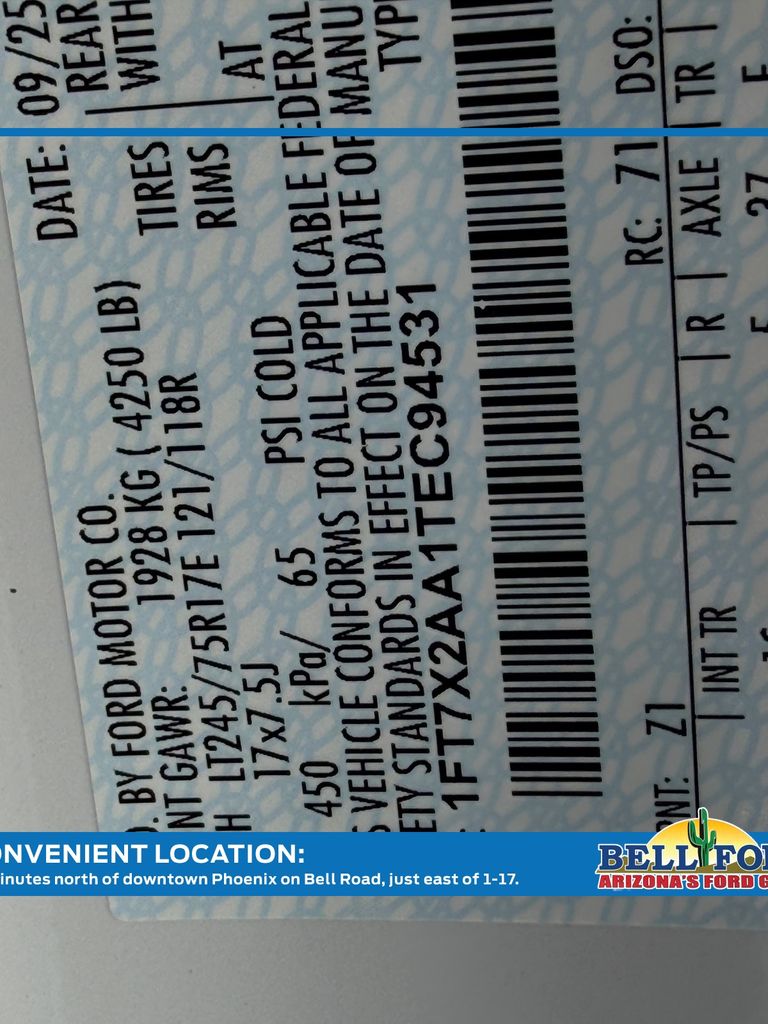 - VIN : 1FT7X2AA1TEC94531