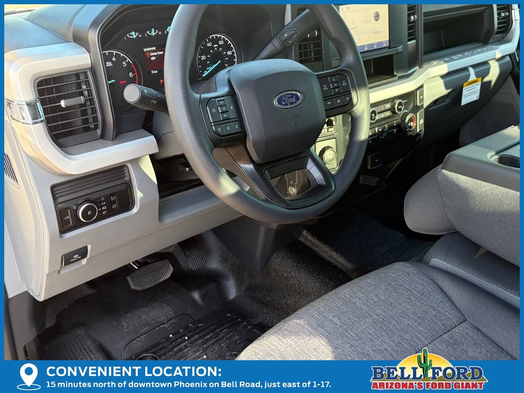 This Ford F-250SD is equipped with the following options: Ford Connectivity Package (1-Year Included), GVWR: 10,000 Lb Payload Package, Internet access capable: 5G Modem - Ford Connectivity Package, Order Code 600A (17" Argent Painted Steel Wheels, 3.73 Axle Ratio, HD Vinyl 40/20/40 Split Bench Seat, Radio: AM/FM Stereo with MP3 Player, and SYNC 4), XL Chrome Package (Bright Chrome Hub Covers and Center Ornaments, Chrome Front Bumper, Chrome Rear Step Bumper, and Halogen Fog Lamps), 4-Wheel Disc Brakes, 6 Speakers, ABS brakes, Air Conditioning, AM/FM radio, Brake assist, Compass, Delay-off headlights, Dual front impact airbags, Dual front side impact airbags, Electronic Stability Control, Emergency communication system: SYNC 4 911 Assist, Exterior Parking Camera Rear, Front anti-roll bar, Front Center Armrest w/Storage, Front reading lights, Front wheel independent suspension, Fully automatic headlights, Heated door mirrors, Illuminated entry, Low tire pressure warning, Outside temperature display, Overhead airbag, Overhead console, Panic alarm, Passenger cancellable airbag, Passenger vanity mirror, Platform Running Boards, Power door mirrors, Power steering, Power windows, Pro Power Onboard - 400W, Rear step bumper, Remote keyless entry, Security system, Speed control, Split folding rear seat, Steering wheel mounted audio controls, Tachometer, Telescoping steering wheel, Tilt steering wheel, Traction control, Trailer Brake Controller, Trip computer, Turn signal indicator mirrors, Upfitter Switches (6), and Variably intermittent wipers. Price includes: $4000 - Retail Customer Cash. Exp. 04/30/2026