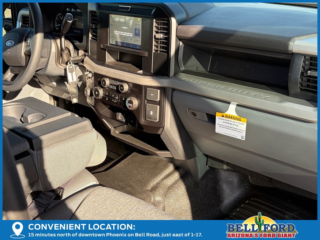 This Ford F-250SD is equipped with the following options: Ford Connectivity Package (1-Year Included), GVWR: 10,000 lb Payload Package, Internet access capable: 5G Modem - Ford Connectivity Package, Order Code 600A, XL Chrome Package (Bright Chrome Hub Covers & Center Ornaments, Chrome Front Bumper, Chrome Rear Step Bumper, and Halogen Fog Lamps), 4WD, 17" Argent Painted Steel Wheels, 190 Amp Alternator, 4-Wheel Disc Brakes, 6 Speakers, ABS brakes, Air Conditioning, AM/FM radio, AM/FM Stereo w/MP3 Player, Brake assist, Compass, Delay-off headlights, Dual front impact airbags, Dual front side impact airbags, Electronic Stability Control, Emergency communication system: SYNC 4 911 Assist, Exterior Parking Camera Rear, Front anti-roll bar, Front Center Armrest w/Storage, Front License Plate Bracket, Front reading lights, Fully automatic headlights, HD Vinyl 40/20/40 Split Bench Seat, Heated door mirrors, Illuminated entry, Low tire pressure warning, Outside temperature display, Overhead airbag, Overhead console, Panic alarm, Passenger vanity mirror, Platform Running Boards, Power door mirrors, Power steering, Power windows, Rear reading lights, Rear step bumper, Remote keyless entry, Security system, Speed control, Split folding rear seat, Steering wheel mounted audio controls, SYNC 4, Tachometer, Telescoping steering wheel, Tilt steering wheel, Traction control, Trailer Brake Controller, Trip computer, Turn signal indicator mirrors, Upfitter Switches (6), Variably intermittent wipers, and Vehicle Integration System 2.0.