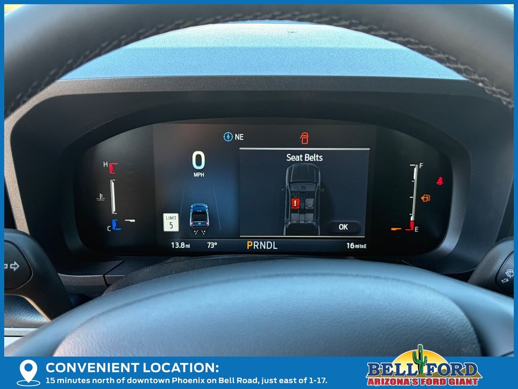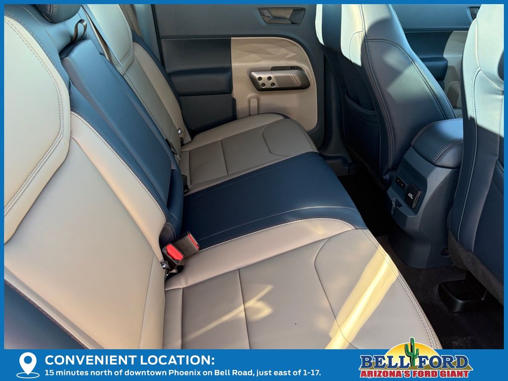 This Ford Maverick is equipped with the following options: Equipment Group 501A, Ford Connectivity Package (1-Year Included), Internet access capable: 5G Modem - Ford Connectivity Package, 2.5L I-4 Hybrid, 2.91 Axle Ratio, 4-Wheel Disc Brakes, 8 Speakers, ABS brakes, ActiveX Trimmed Heated Front Bucket Seats, Air Conditioning, Alloy wheels, AM/FM radio: SiriusXM with 360L, Apple CarPlay/Android Auto, Auto High-beam Headlights, Automatic temperature control, Brake assist, Bumpers: body-color, Compass, Delay-off headlights, Driver door bin, Driver vanity mirror, Dual front impact airbags, Dual front side impact airbags, Electronic Stability Control, Emergency communication system: SYNC 4 911 Assist, Exterior Parking Camera Rear, Four wheel independent suspension, Front anti-roll bar, Front Bucket Seats, Front Center Armrest, Front dual zone A/C, Front reading lights, Fully automatic headlights, Heated door mirrors, Heated front seats, Heated steering wheel, Illuminated entry, Knee airbag, Low tire pressure warning, Navigation system: Connected Navigation, Occupant sensing airbag, Outside temperature display, Overhead airbag, Overhead console, Panic alarm, Passenger door bin, Passenger vanity mirror, Power door mirrors, Power driver seat, Power steering, Power windows, Power-Sliding Rear Window, Radio data system, Radio: B&O Sound System by Bang & Olufsen, Rear anti-roll bar, Rear seat center armrest, Rear step bumper, Remote keyless entry, Security system, SiriusXM w/360L, Speed control, Speed-sensing steering, Steering wheel mounted audio controls, SYNC 4 w/Enhanced Voice Recognition, Telescoping steering wheel, Tilt steering wheel, Traction control, Trip computer, and Wheels: 19" Machined Painted Aluminum.