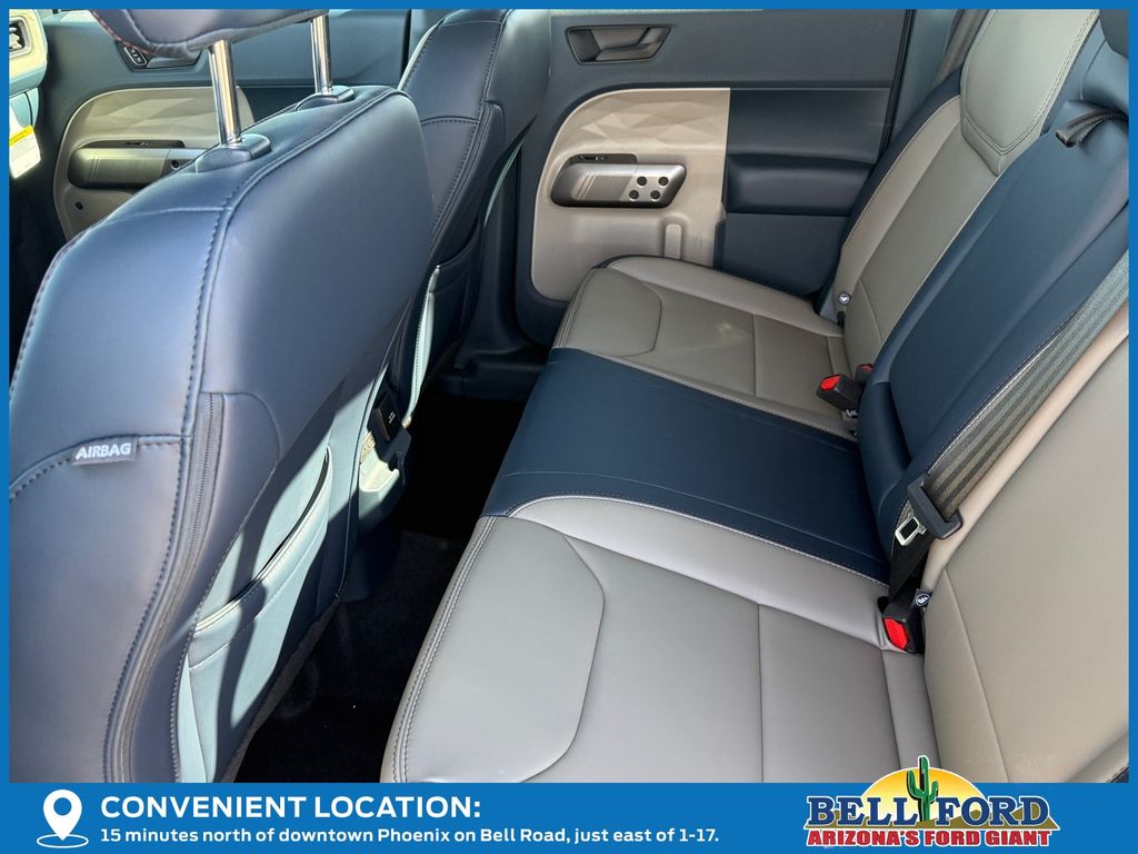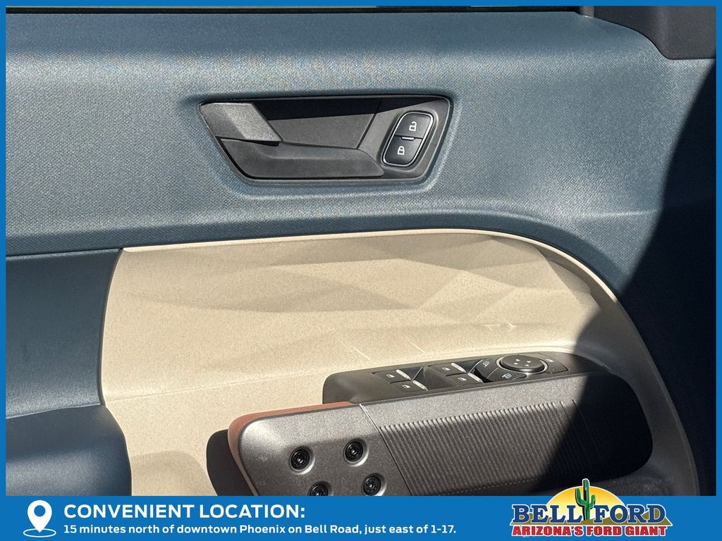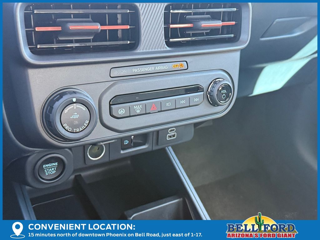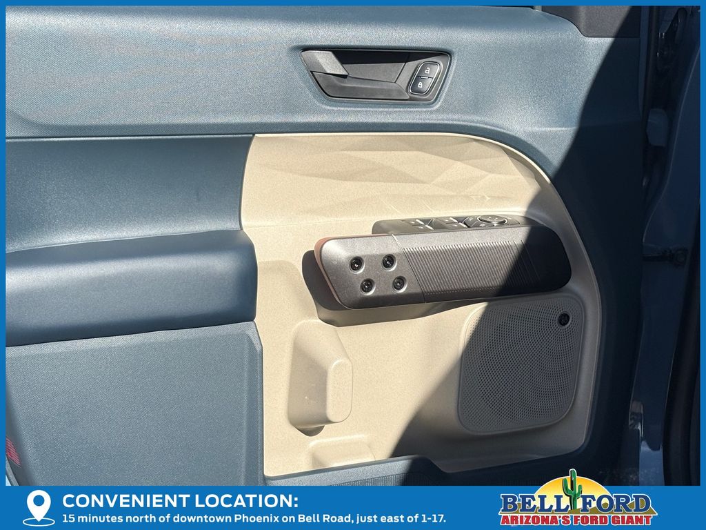 This Ford Maverick is equipped with the following options: 4K Tow Package (Trailer Brake Controller, Trailer Hitch (class III) 2" Receiver, and Upgraded Cooling Fan), Equipment Group 502A (ActiveX Trimmed Heated Front Bucket Seats, Radio: B&O Sound System by Bang and Olufsen, SiriusXM with 360L, SYNC 4 with Enhanced Voice Recognition, and Wheels: 19" Machined Aluminum Painted), Ford Connectivity Package (1-Year Included), Internet access capable: 5G Modem - Ford Connectivity Package, 2.91 Axle Ratio, 4-Wheel Disc Brakes, 8 Speakers, ABS brakes, Air Conditioning, Alloy wheels, AM/FM radio: SiriusXM with 360L, Apple CarPlay/Android Auto, Auto High-beam Headlights, Automatic temperature control, Brake assist, Bumpers: body-color, Compass, Delay-off headlights, Driver door bin, Driver vanity mirror, Dual front impact airbags, Dual front side impact airbags, Electronic Stability Control, Emergency communication system: SYNC 4 911 Assist, Exterior Parking Camera Rear, Four wheel independent suspension, Front anti-roll bar, Front Bucket Seats, Front Center Armrest, Front dual zone A/C, Front reading lights, Fully automatic headlights, Heated door mirrors, Heated front seats, Heated steering wheel, Illuminated entry, Knee airbag, Low tire pressure warning, Navigation system: Connected Navigation, Occupant sensing airbag, Outside temperature display, Overhead airbag, Overhead console, Panic alarm, Passenger door bin, Passenger vanity mirror, Power door mirrors, Power driver seat, Power steering, Power windows, Power-Sliding Rear Window, Radio data system, Rear anti-roll bar, Rear seat center armrest, Rear step bumper, Remote keyless entry, Security system, Speed control, Speed-sensing steering, Steering wheel mounted audio controls, Telescoping steering wheel, Tilt steering wheel, Traction control, and Trip computer.
