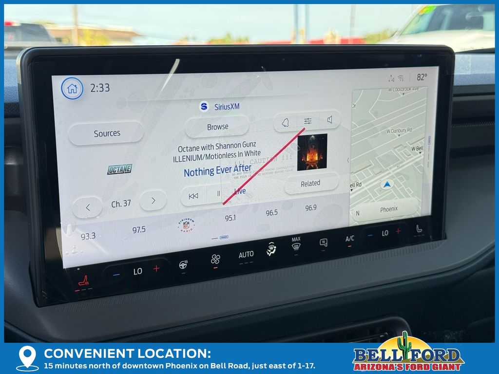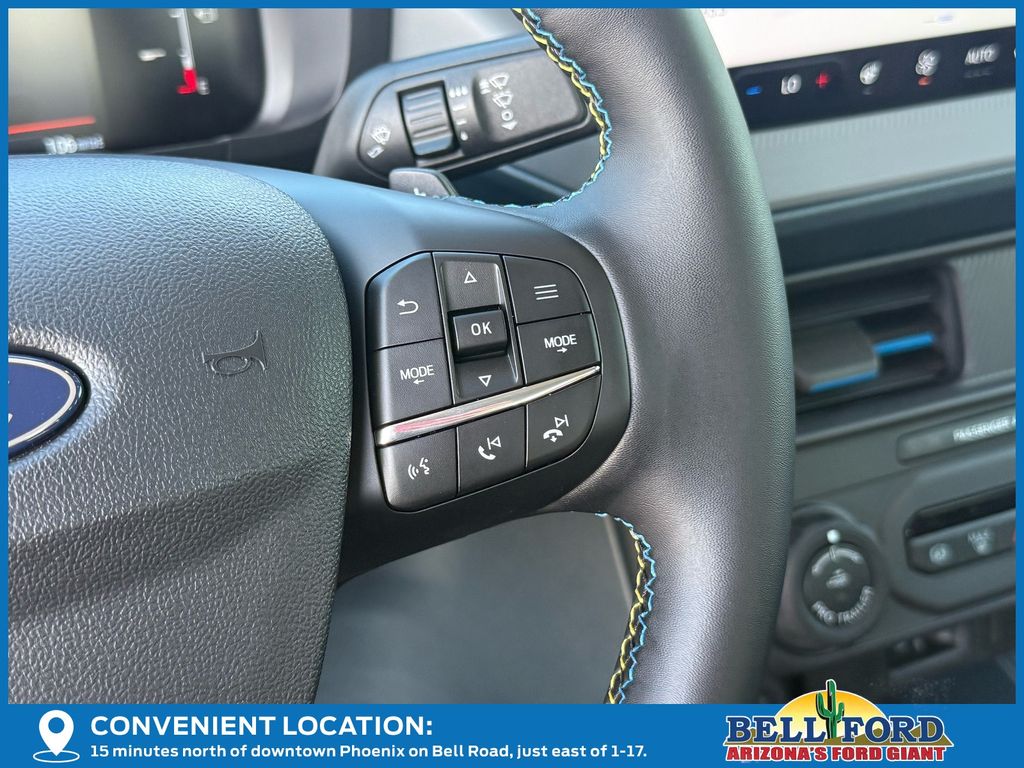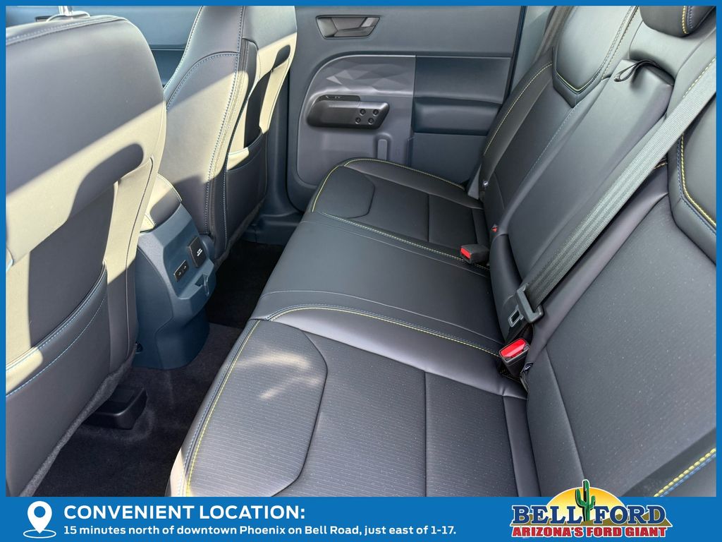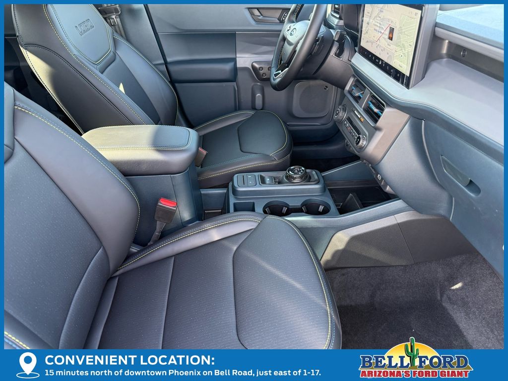 This Ford Maverick is equipped with the following options: Equipment Group 702A High (3.63 Axle Ratio, 360-Degree Camera, Acoustic Windshield, ActiveX Trimmed Front Bucket Seats, Adaptive Cruise Control (ACC) with Stop and Go, Ambient Lighting and LED Box Lighting, Auto High Beams, Bed Tie Down Locking Rails with 2 Locking Brackets, Blind Spot Assist, Driver/Passenger Illuminated Visors, Dual-Zone Electronic Automatic Temperature Control, Electric Sound Enhancement, Ford Co-Pilot Assist 2.0, Front and Rear All-Weather Floor Liners, Front Parking Sensors, Heated Mirrors, Heated Seats, Heated Steering Wheel, Intersection Assist, Lane-Keeping System, Post-Collision Braking, Power Moonroof, Power-Sliding Rear Window, Predictive Speed Assist, Pro Power Onboard - 400W, Pro Trailer Backup Assist, Pro Trailer Hitch Assist, Radio: B&O Sound System by Bang and Olufsen, Rear Parking Sensor, Reverse Brake Assist, SiriusXM with 360L, SYNC 4 with Enhanced Voice Recognition, Tough Bed Spray-in Bedliner, and Wheels: 19" Turbofan-Stuled Black Painted Aluminum), Ford Connectivity Package (1-Year Included), Internet access capable: 5G Modem - Ford Connectivity Package, 4-Wheel Disc Brakes, 8 Speakers, ABS brakes, Air Conditioning, Alloy wheels, AM/FM radio: SiriusXM with 360L, Apple CarPlay/Android Auto, Auto High-beam Headlights, Automatic temperature control, Brake assist, Bumpers: body-color, Compass, Delay-off headlights, Driver door bin, Driver vanity mirror, Dual front impact airbags, Dual front side impact airbags, Electronic Stability Control, Emergency communication system: SYNC 4 911 Assist, Exterior Parking Camera Rear, Four wheel independent suspension, Front anti-roll bar, Front Bucket Seats, Front Center Armrest, Front dual zone A/C, Front fog lights, Front reading lights, Fully automatic headlights, Heated door mirrors, Heated front seats, Heated steering wheel, Illuminated entry, Knee airbag, Low tire pressure warning, Navigation system: Connected Navigation, Occupant sensing airbag, Outside temperature display, Overhead airbag, Overhead console, Panic alarm, Passenger door bin, Passenger vanity mirror, Power door mirrors, Power driver seat, Power moonroof, Power steering, Power windows, Radio data system, Rear anti-roll bar, Rear seat center armrest, Rear step bumper, Remote keyless entry, Security system, Speed control, Speed-sensing steering, Steering wheel mounted audio controls, Tachometer, Telescoping steering wheel, Tilt steering wheel, Traction control, Trip computer, and Wheels: 19" Black Painted Aluminum.