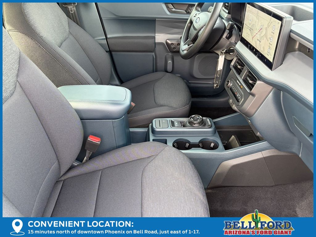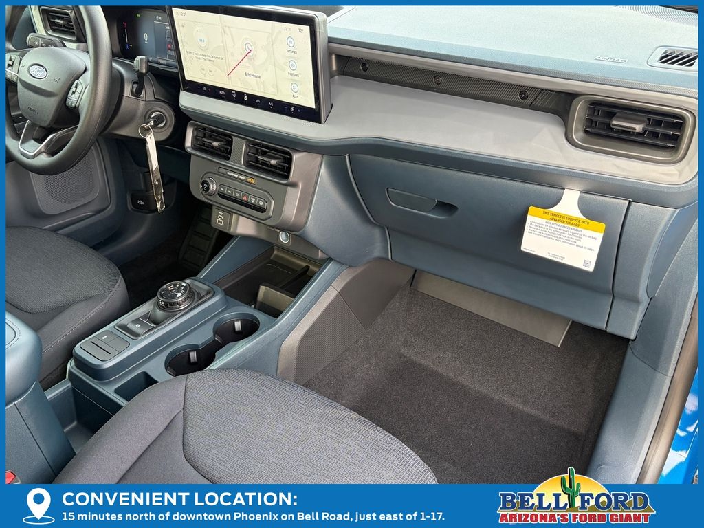 This Ford Maverick is equipped with the following options: Equipment Group 100A, Ford Connectivity Package (1-Year Included), Internet access capable: 5G Modem - Ford Connectivity Package, 2.5L I-4 Hybrid, 2.91 Axle Ratio, 2K Trailer Hitch Receiver w/4-Pin Connector, 4-Wheel Disc Brakes, 6 Speakers, ABS brakes, Air Conditioning, AM/FM radio: SiriusXM with 360L, Apple CarPlay/Android Auto, Auto High Beams, Auto High-beam Headlights, Automatic temperature control, Brake assist, Bumpers: body-color, Compass, Delay-off headlights, Driver door bin, Driver vanity mirror, Dual front impact airbags, Dual front side impact airbags, Electronic Stability Control, Emergency communication system: SYNC 4 911 Assist, Exterior Parking Camera Rear, Front anti-roll bar, Front Bucket Seats, Front Center Armrest, Front Cloth Bucket Seats, Front reading lights, Front wheel independent suspension, Fully automatic headlights, Illuminated entry, Intersection Assist, Knee airbag, Lane-Keeping System, Low tire pressure warning, Occupant sensing airbag, Outside temperature display, Overhead airbag, Overhead console, Panic alarm, Passenger door bin, Passenger vanity mirror, Power steering, Power windows, Pre-Collision Assist w/Automatic Emergency Braking, Radio data system, Radio: AM/FM Stereo w/6 Speakers, Rear anti-roll bar, Rear step bumper, Rear-View Camera, Remote keyless entry, SiriusXM w/360L, Speed control, Speed-sensing steering, Steering wheel mounted audio controls, SYNC 4 w/Enhanced Voice Recognition, Telescoping steering wheel, Tilt steering wheel, Traction control, Trip computer, and Wheels: 17" Steel w/Sparkle Silver Painted Cover.