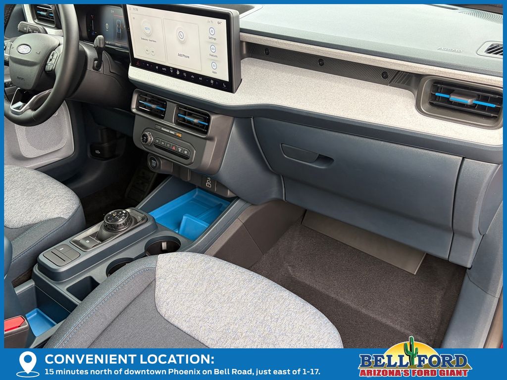 This Ford Maverick is equipped with the following options: 4K Tow Package (Trailer Brake Controller, Trailer Hitch (Class III) 2" Receiver, and Upgraded Cooling Fan), Equipment Group 301A, Ford Co-Pilot360 (Auto High Beams, BLIS w/Cross-Traffic Alert & Trailer Coverage, Exit Warning, Intersection Assist, Lane-Keeping System, Power Glass Manual-Folding Mirrors, Pre-Collision Assist w/Automatic Emergency Braking, Rear Cross Traffic Braking, Rear Parking Sensors, and Rear-View Camera), Ford Connectivity Package (1-Year Included), Internet access capable: 5G Modem - Ford Connectivity Package, XLT Luxury Package (Heated Mirror w/Painted Black Skull Caps, Heated Seats, LED Box Lighting, Pro Power Onboard - 400W, Remote Start System, and Soft Vinyl Wrapped Heated Steering Wheel), 2.5L I-4 Hybrid, 2.91 Axle Ratio, 4-Wheel Disc Brakes, 6 Speakers, ABS brakes, Air Conditioning, Alloy wheels, AM/FM radio: SiriusXM with 360L, Apple CarPlay/Android Auto, Auto High-beam Headlights, Automatic temperature control, Brake assist, Bumpers: body-color, Compass, Delay-off headlights, Driver door bin, Driver vanity mirror, Dual front impact airbags, Dual front side impact airbags, Electronic Stability Control, Emergency communication system: SYNC 4 911 Assist, Exterior Parking Camera Rear, Four wheel independent suspension, Front anti-roll bar, Front Bucket Seats, Front Center Armrest, Front reading lights, Fully automatic headlights, Illuminated entry, Knee airbag, Low tire pressure warning, Occupant sensing airbag, Outside temperature display, Overhead airbag, Overhead console, Panic alarm, Passenger door bin, Passenger vanity mirror, Power door mirrors, Power steering, Power windows, Radio data system, Radio: AM/FM Stereo w/6 Speakers, Rear anti-roll bar, Rear seat center armrest, Rear step bumper, Remote keyless entry, Security system, SiriusXM w/360L, Speed control, Speed-sensing steering, Steering wheel mounted audio controls, SYNC 4 w/Enhanced Voice Recognition, Telescoping steering wheel, Tilt steering wheel, Traction control, Trip computer, Unique Cloth Front Bucket Seats, and Wheels: 17" Carbonized Gray Painted Aluminum.