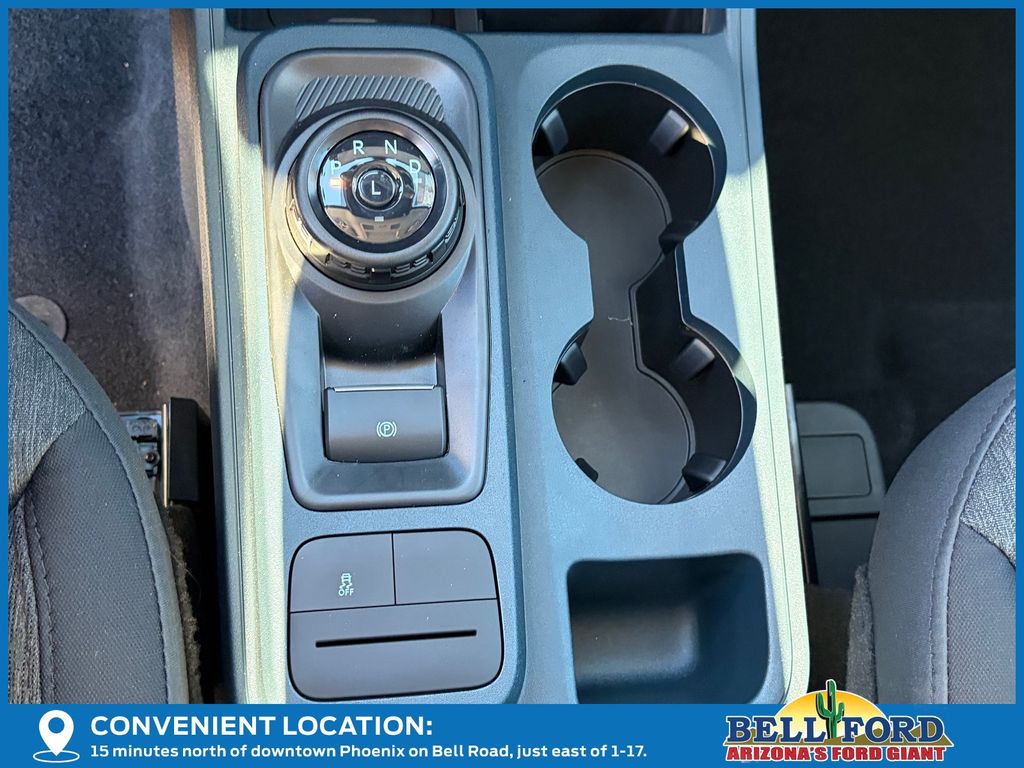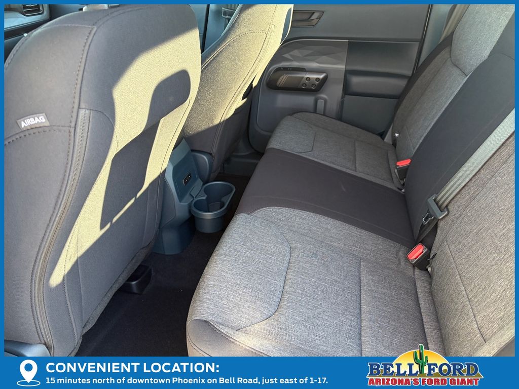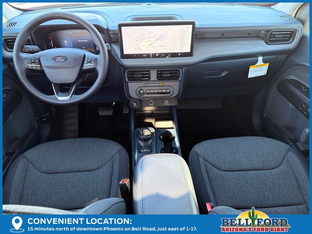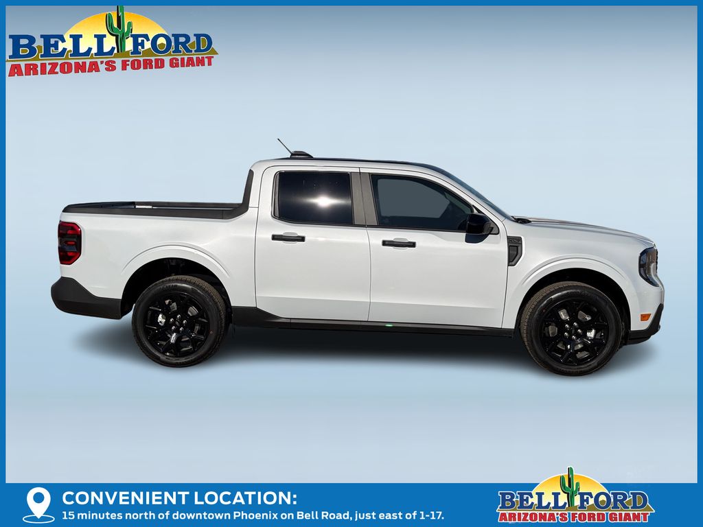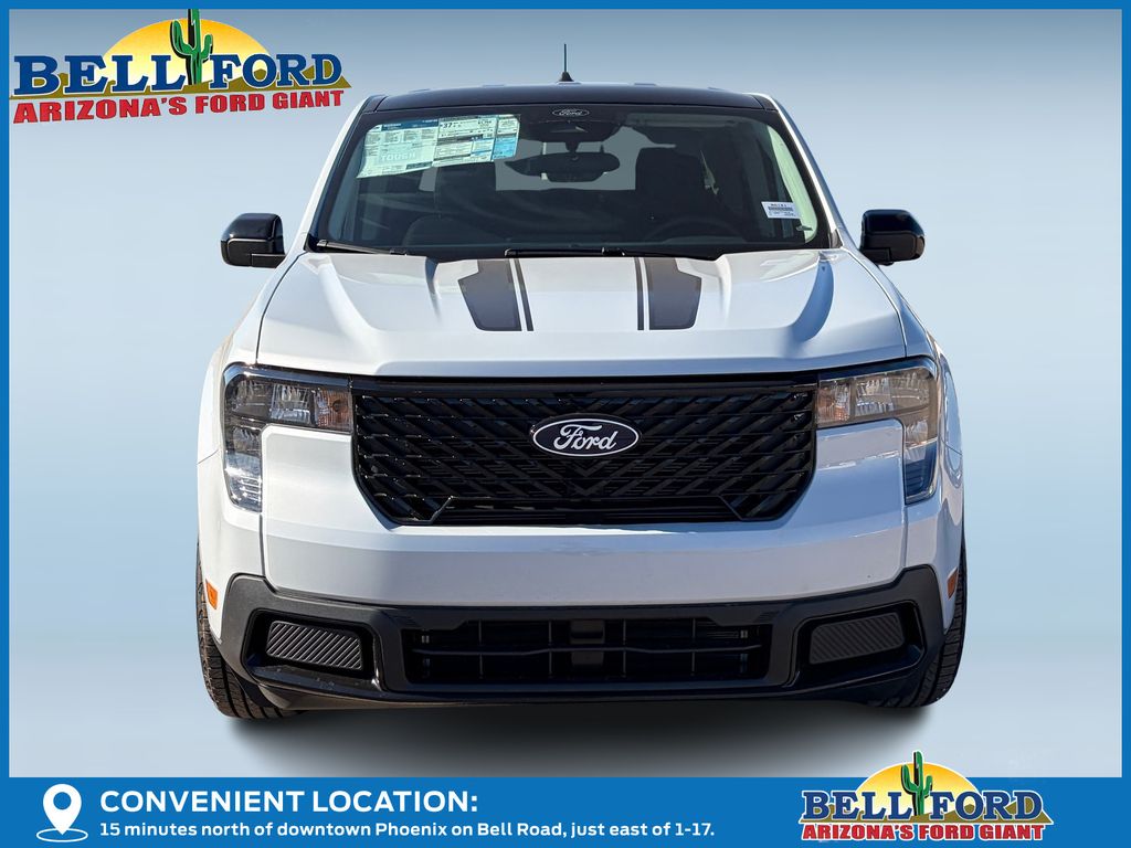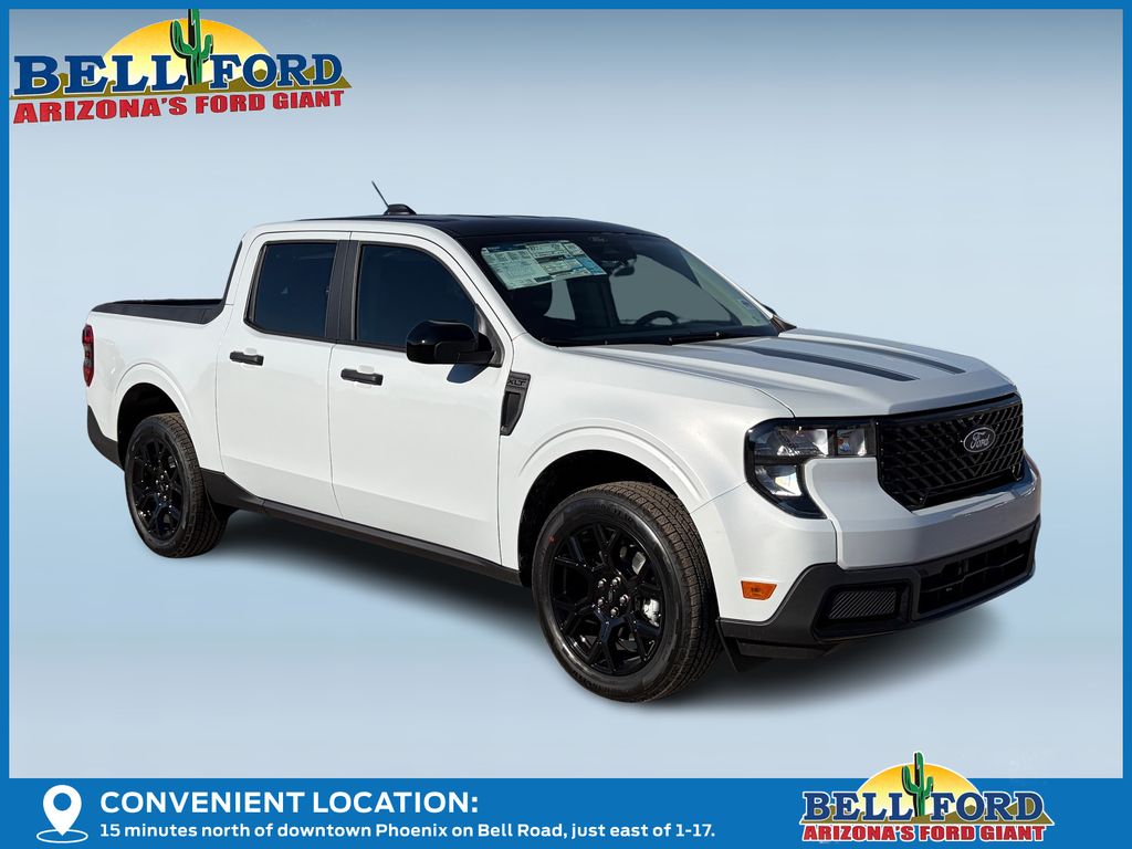This Ford Maverick is equipped with the following options: Black Appearance Package (Black Grille, Black Interior Accents, Black Painted Mirrors, Unique Cloth Front Bucket Seats w/Black Appearance, and Wheels: 19" Black Painted Aluminum), Equipment Group 301A, Ford Connectivity Package (1-Year Included), Internet access capable: 5G Modem - Ford Connectivity Package, 2.5L I-4 Hybrid, 2.91 Axle Ratio, 4-Wheel Disc Brakes, 6 Speakers, ABS brakes, Air Conditioning, Alloy wheels, AM/FM radio: SiriusXM with 360L, Apple CarPlay/Android Auto, Auto High Beams, Auto High-beam Headlights, Automatic temperature control, Brake assist, Bumpers: body-color, Compass, Delay-off headlights, Driver door bin, Driver vanity mirror, Dual front impact airbags, Dual front side impact airbags, Electronic Stability Control, Emergency communication system: SYNC 4 911 Assist, Exterior Parking Camera Rear, Four wheel independent suspension, Front anti-roll bar, Front Bucket Seats, Front Center Armrest, Front reading lights, Fully automatic headlights, Illuminated entry, Intersection Assist, Knee airbag, Lane-Keeping System, Low tire pressure warning, Occupant sensing airbag, Outside temperature display, Overhead airbag, Overhead console, Panic alarm, Passenger door bin, Passenger vanity mirror, Power door mirrors, Power steering, Power windows, Pre-Collision Assist w/Automatic Emergency Braking, Radio data system, Radio: AM/FM Stereo w/6 Speakers, Rear anti-roll bar, Rear seat center armrest, Rear step bumper, Rear-View Camera, Remote keyless entry, Security system, SiriusXM w/360L, Speed control, Speed-sensing steering, Steering wheel mounted audio controls, SYNC 4 w/Enhanced Voice Recognition, Telescoping steering wheel, Tilt steering wheel, Traction control, Trip computer, Unique Cloth Front Bucket Seats, and Wheels: 17" Carbonized Gray Painted Aluminum.