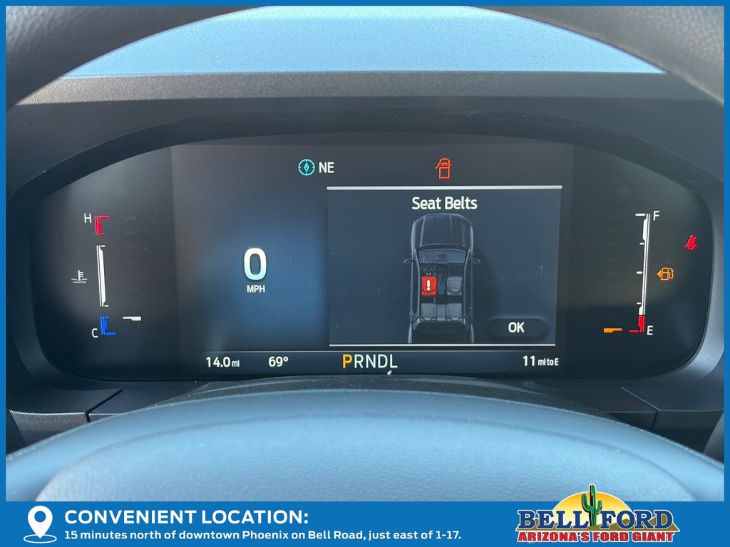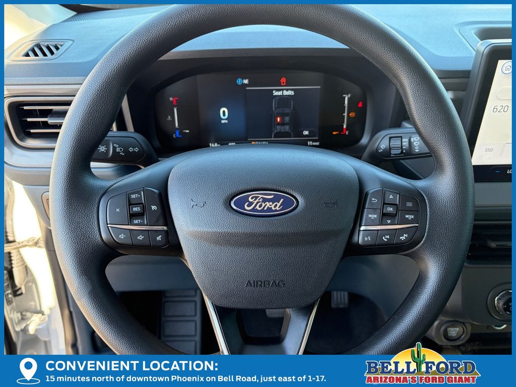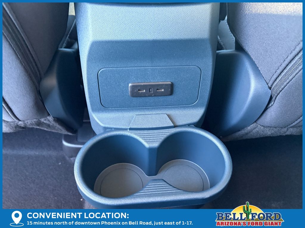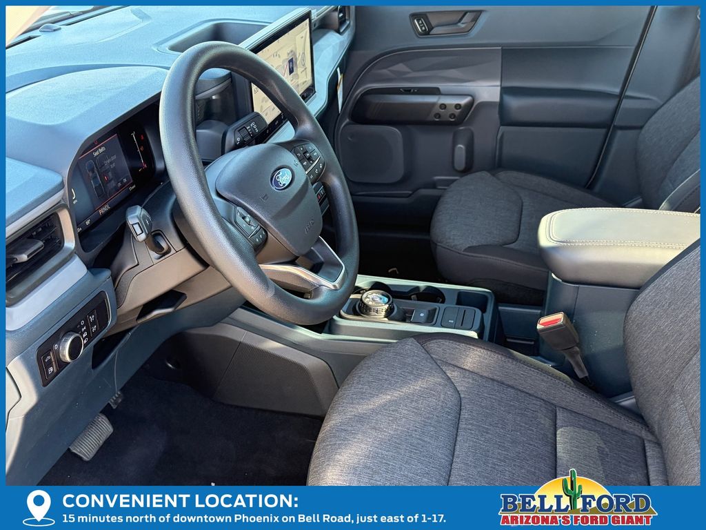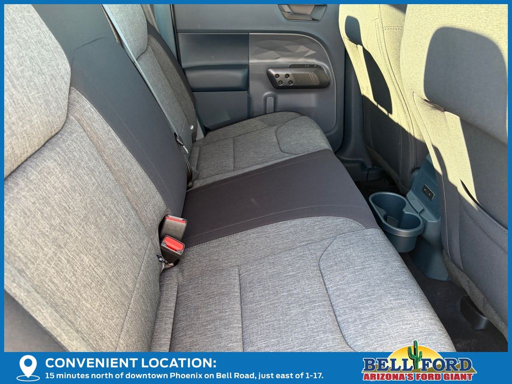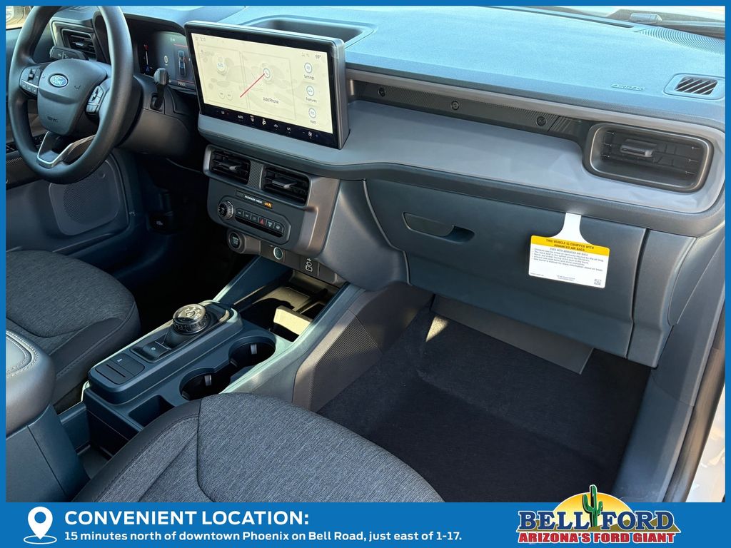 This Ford Maverick is equipped with the following options: Black Appearance Package (Black Grille, Black Interior Accents, Black Painted Mirrors, Unique Cloth Front Bucket Seats w/Black Appearance, and Wheels: 19" Black Painted Aluminum), Equipment Group 301A, Ford Connectivity Package (1-Year Included), Internet access capable: 5G Modem - Ford Connectivity Package, 2.5L I-4 Hybrid, 2.91 Axle Ratio, 4-Wheel Disc Brakes, 6 Speakers, ABS brakes, Air Conditioning, Alloy wheels, AM/FM radio: SiriusXM with 360L, Apple CarPlay/Android Auto, Auto High Beams, Auto High-beam Headlights, Automatic temperature control, Brake assist, Bumpers: body-color, Compass, Delay-off headlights, Driver door bin, Driver vanity mirror, Dual front impact airbags, Dual front side impact airbags, Electronic Stability Control, Emergency communication system: SYNC 4 911 Assist, Exterior Parking Camera Rear, Four wheel independent suspension, Front anti-roll bar, Front Bucket Seats, Front Center Armrest, Front reading lights, Fully automatic headlights, Illuminated entry, Intersection Assist, Knee airbag, Lane-Keeping System, Low tire pressure warning, Occupant sensing airbag, Outside temperature display, Overhead airbag, Overhead console, Panic alarm, Passenger door bin, Passenger vanity mirror, Power door mirrors, Power steering, Power windows, Pre-Collision Assist w/Automatic Emergency Braking, Radio data system, Radio: AM/FM Stereo w/6 Speakers, Rear anti-roll bar, Rear seat center armrest, Rear step bumper, Rear-View Camera, Remote keyless entry, Security system, SiriusXM w/360L, Speed control, Speed-sensing steering, Steering wheel mounted audio controls, SYNC 4 w/Enhanced Voice Recognition, Telescoping steering wheel, Tilt steering wheel, Traction control, Trip computer, Unique Cloth Front Bucket Seats, and Wheels: 17" Carbonized Gray Painted Aluminum.