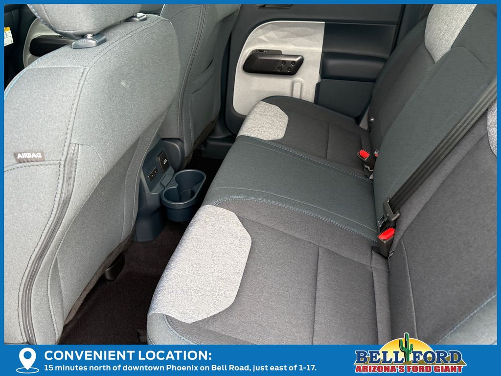This Ford Maverick is equipped with the following options: Equipment Group 300A (Radio: AM/FM Stereo with 6 Speakers, SiriusXM with 360L, SYNC 4 with Enhanced Voice Recognition, Unique Cloth Front Bucket Seats, and Wheels: 17" Carbonized Gray Painted Aluminum), Ford Connectivity Package (1-Year Included), Internet access capable: 5G Modem - Ford Connectivity Package, XLT Luxury Package (Heated Mirror with Painted Black Skull Caps, Heated Seats, LED Box Lighting, Pro Power Onboard - 400W, Remote Start System, and Soft Vinyl Wrapped Heated Steering Wheel), 2.5L I-4 Hybrid, 2.91 Axle Ratio, 4-Wheel Disc Brakes, 6 Speakers, ABS brakes, Air Conditioning, Alloy wheels, AM/FM radio: SiriusXM with 360L, Apple CarPlay/Android Auto, Auto High Beams, Auto High-beam Headlights, Automatic temperature control, Brake assist, Bumpers: body-color, Compass, Delay-off headlights, Driver door bin, Driver vanity mirror, Dual front impact airbags, Dual front side impact airbags, Electronic Stability Control, Emergency communication system: SYNC 4 911 Assist, Exterior Parking Camera Rear, Front anti-roll bar, Front Bucket Seats, Front Center Armrest, Front reading lights, Front wheel independent suspension, Fully automatic headlights, Illuminated entry, Intersection Assist, Knee airbag, Lane-Keeping System, Low tire pressure warning, Occupant sensing airbag, Outside temperature display, Overhead airbag, Overhead console, Panic alarm, Passenger door bin, Passenger vanity mirror, Power door mirrors, Power steering, Power windows, Pre-Collision Assist with Automatic Emergency Braking, Radio data system, Rear anti-roll bar, Rear seat center armrest, Rear step bumper, Rear-View Camera, Remote keyless entry, Security system, Speed control, Speed-sensing steering, Steering wheel mounted audio controls, Telescoping steering wheel, Tilt steering wheel, Traction control, and Trip computer.